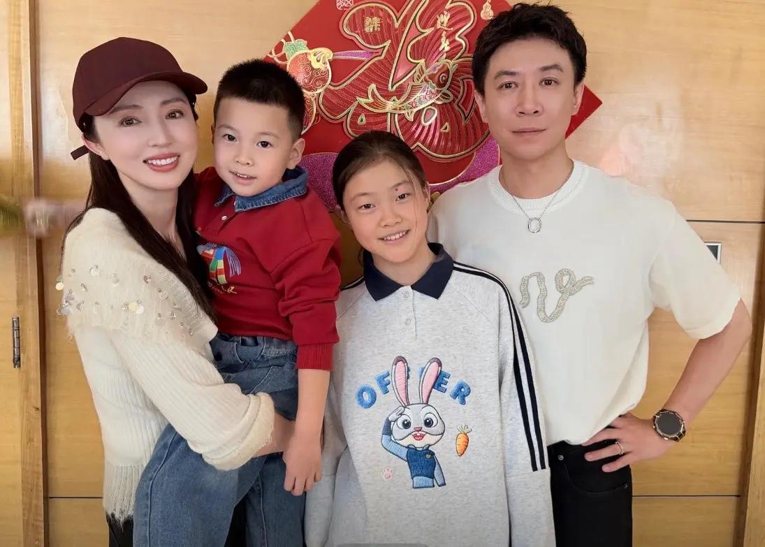 張維伊姐姐曬出董璇回婆家探親時候的全家福,其中張維伊摟着董璇站在後排中心位置上,外婆坐在最前排的中間位置。