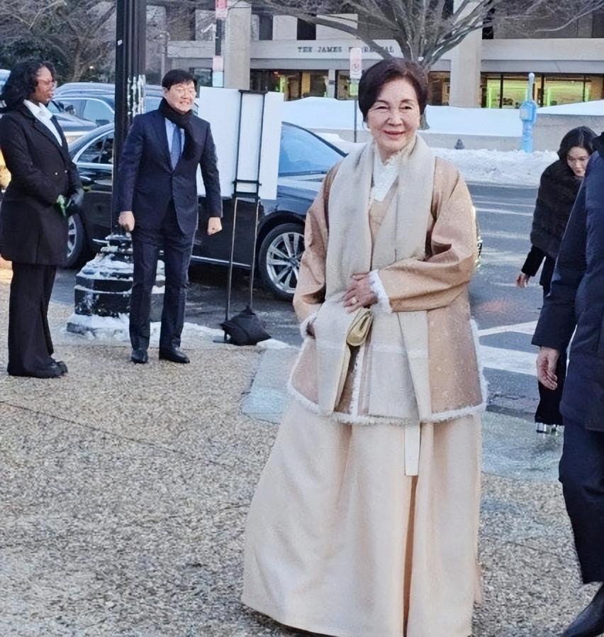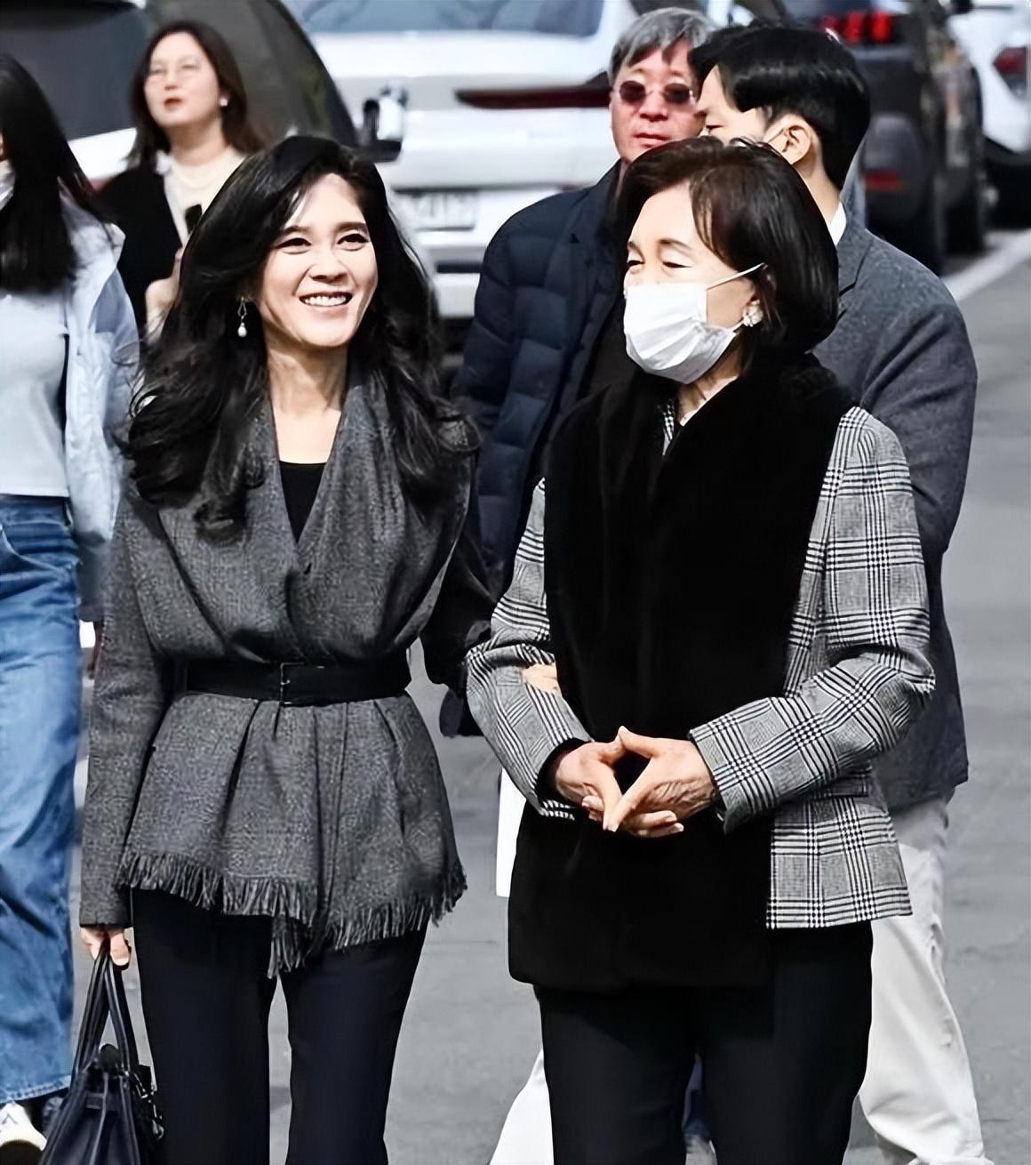 她81歲高齡依舊保養得宜,一頭濃密黑髮,眉眼精緻,身着優雅服飾與女兒李富真同框,竟宛如同齡人,用一生詮釋了“美無止境”。