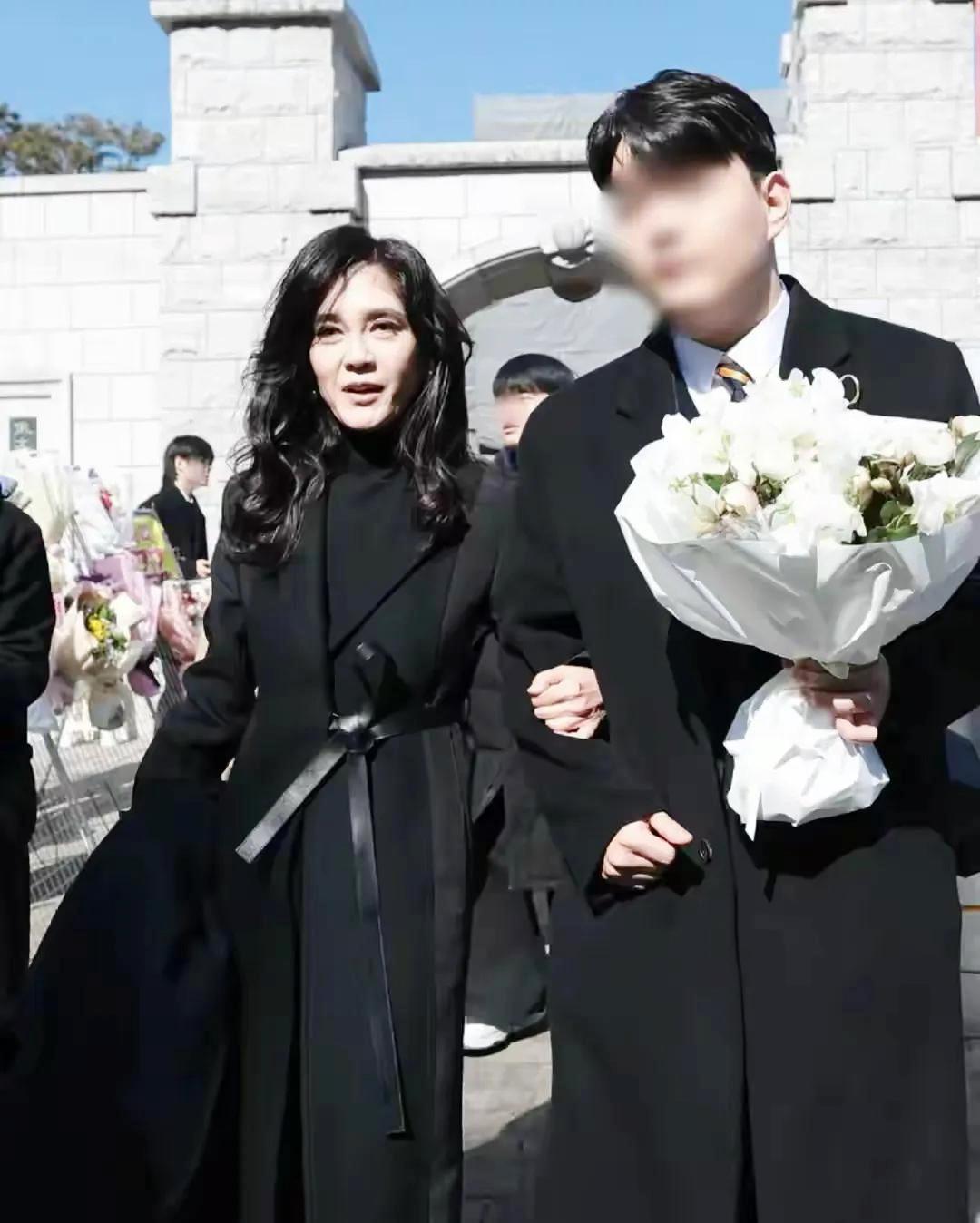 不同於以往鏡頭前的嚴肅冷豔,此次亮相的李富真,臉上難掩笑意,眉眼間滿是柔和,與平日的不苟言笑形成鮮明反差。