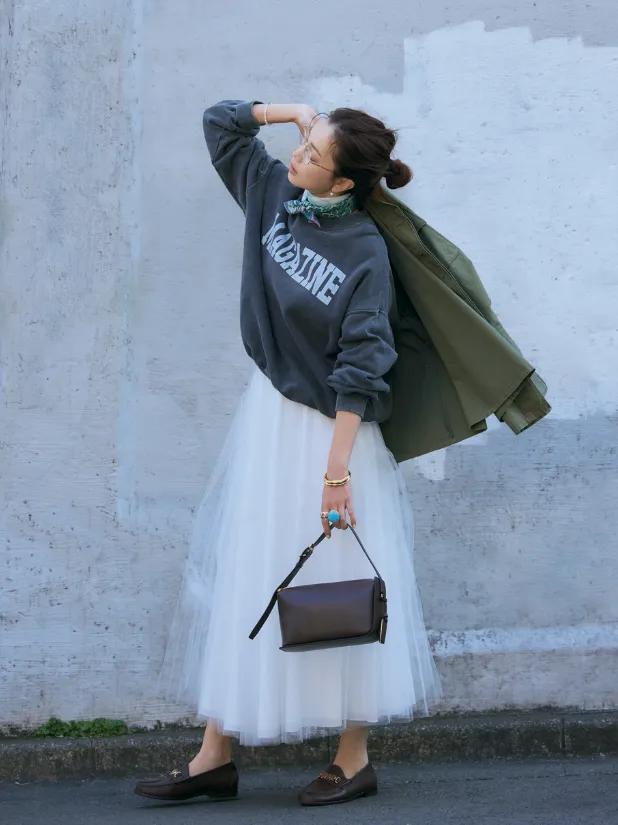 西裝與裙子的搭配,那可是早春最溫柔的,也是最容易打造氛圍感的搭配公式,挺括簡約的西裝外套,中和了紗裙帶來的甜膩,輕盈飄逸感的紗裙,一剛一柔,這樣的早春穿搭剛剛好,顯瘦的同時又不失氣質,就這麼隨便一搭都很好看了。