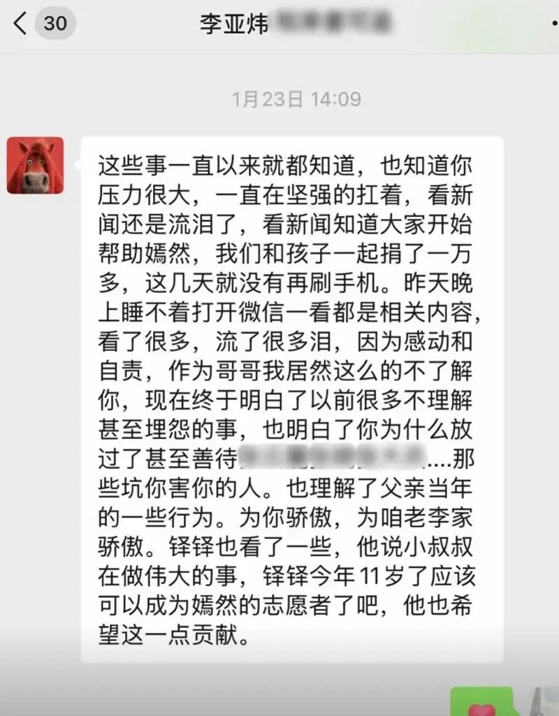 18年後,也就是在2026年的春節,李亞鵬終於收到哥哥李亞煒發來的訊息,看到哥哥言語中的自責,也深深地感動。