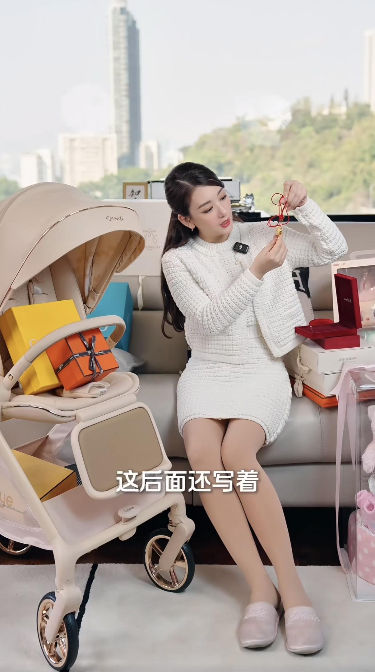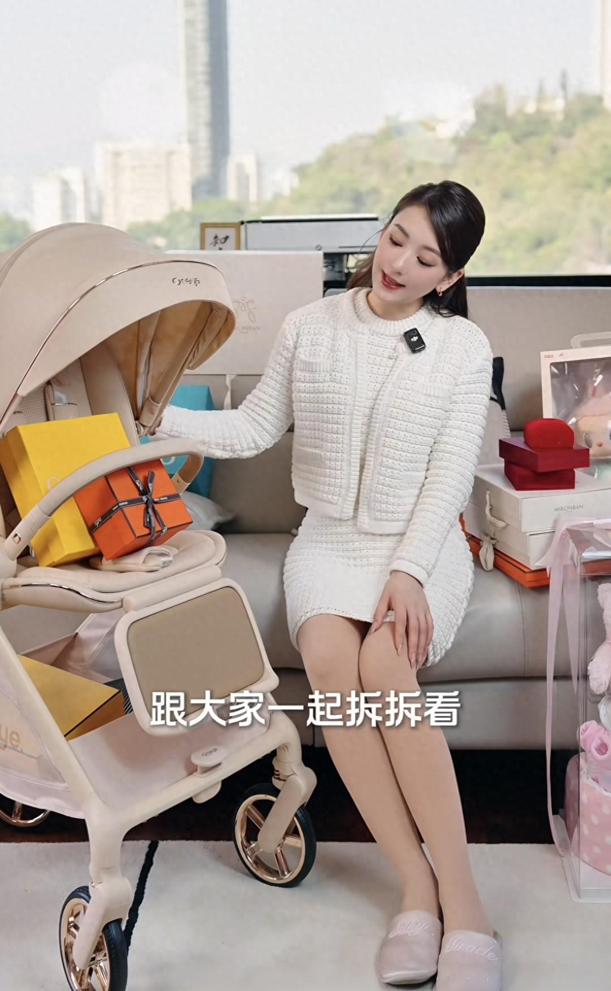 方媛曬3胎女兒滿月禮,小金鎖玉手鐲一籮筐,3500的嬰兒車算平價