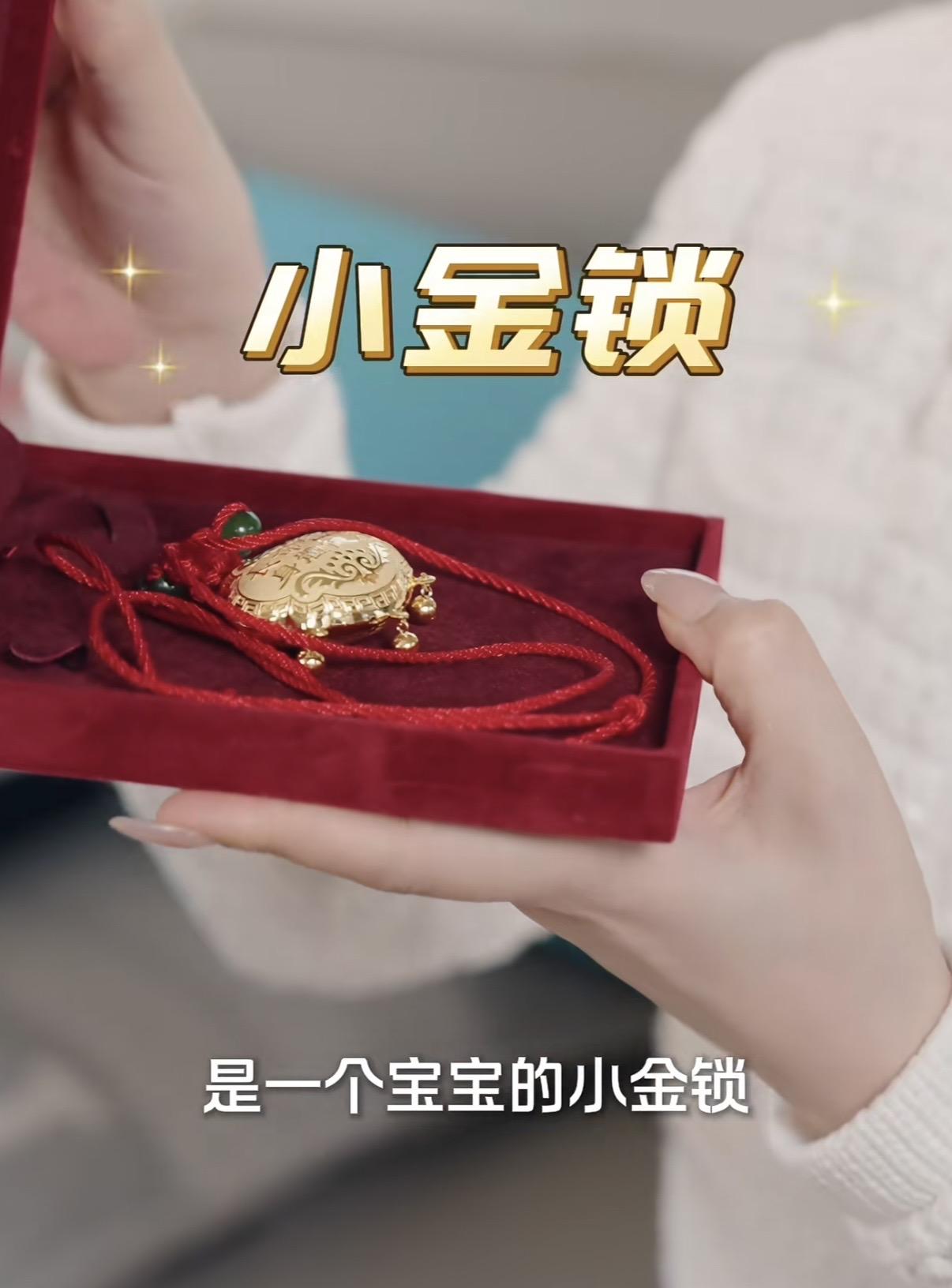 方媛打開精緻盒子,裏面是一枚沉甸甸的小金鎖,配了喜慶的紅繩。在所有禮物中,這枚小金鎖別緻又討喜,寓意更是美好。