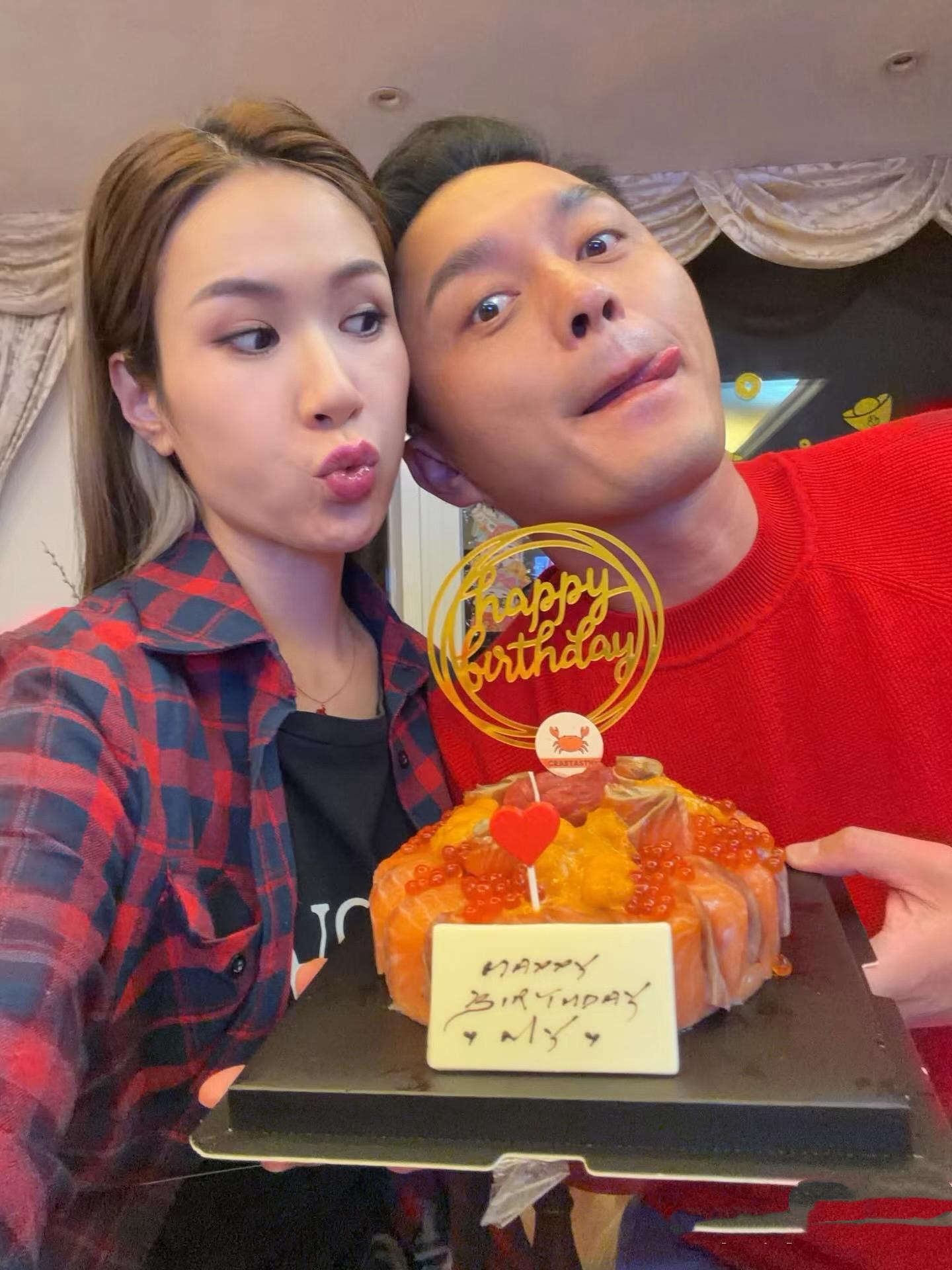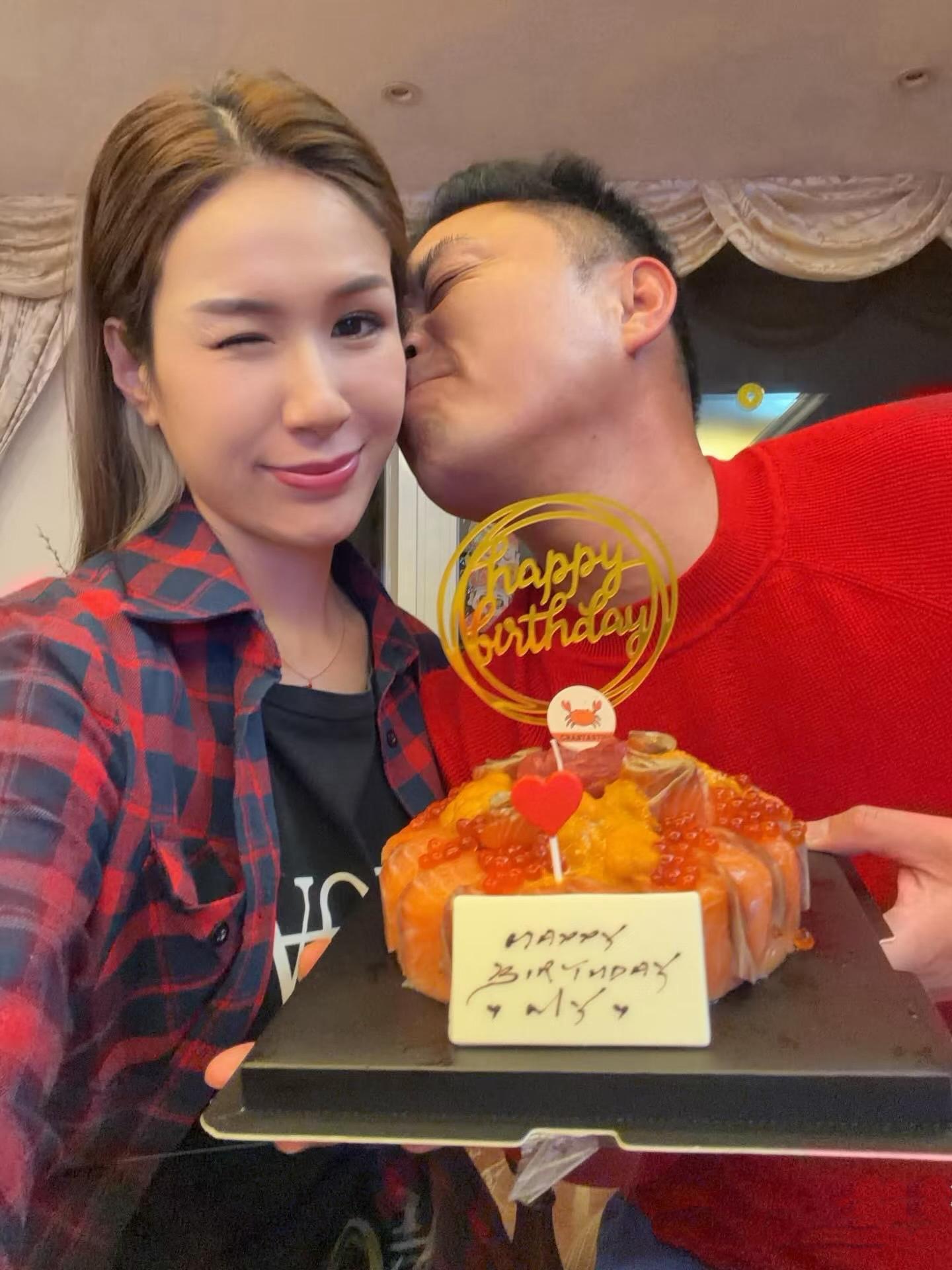 莊思明爲45歲男友慶生,海鮮刺身做蛋糕真新穎,女方多次催婚未果