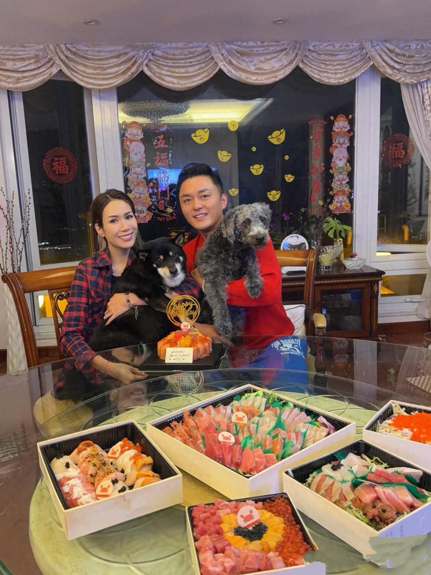 這次莊思明給楊明慶生,儼然就是以準妻子的身份。兩個人在家中準備了一桌子海鮮刺身,還穿着同色系的衣服,看着很般配。