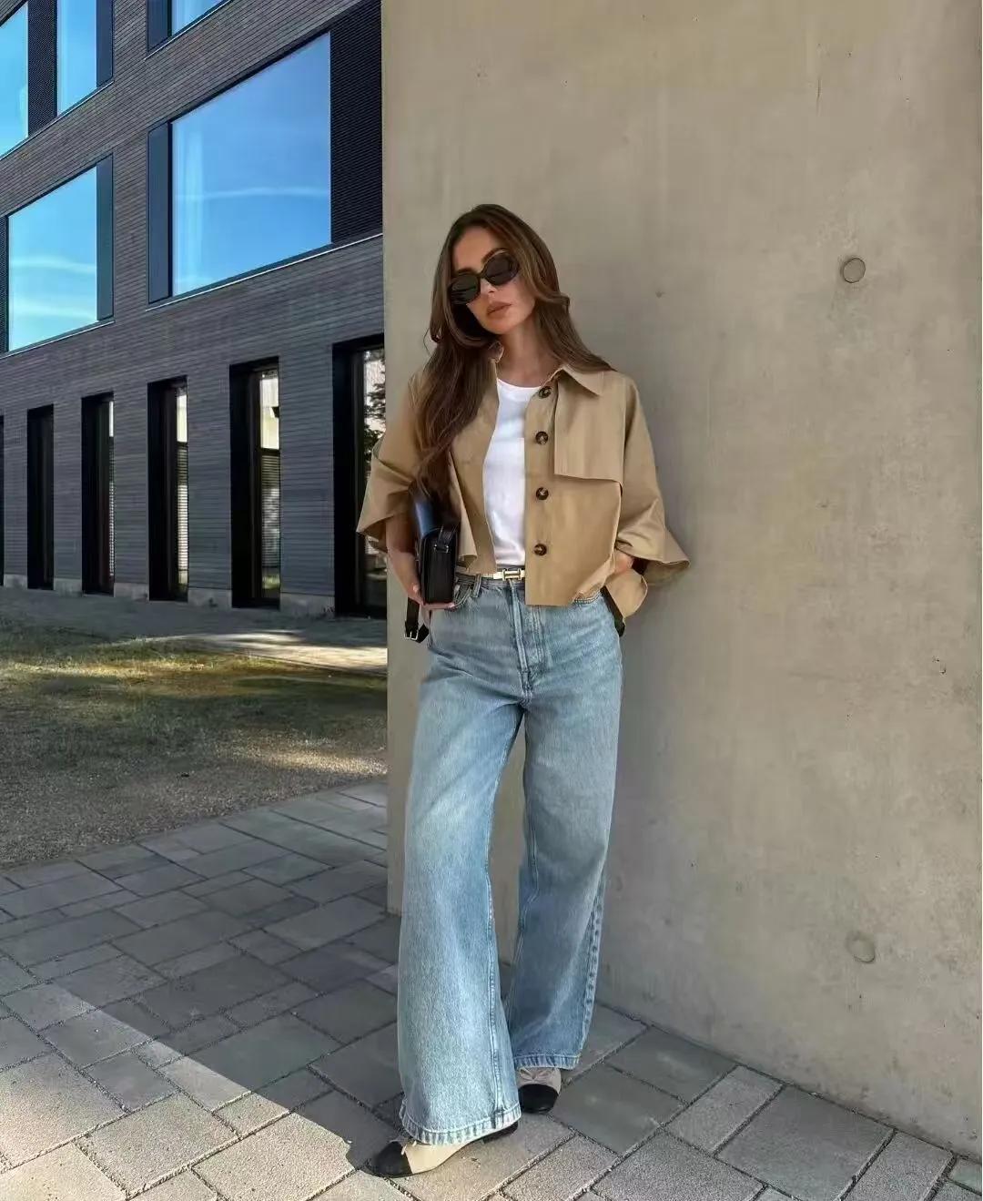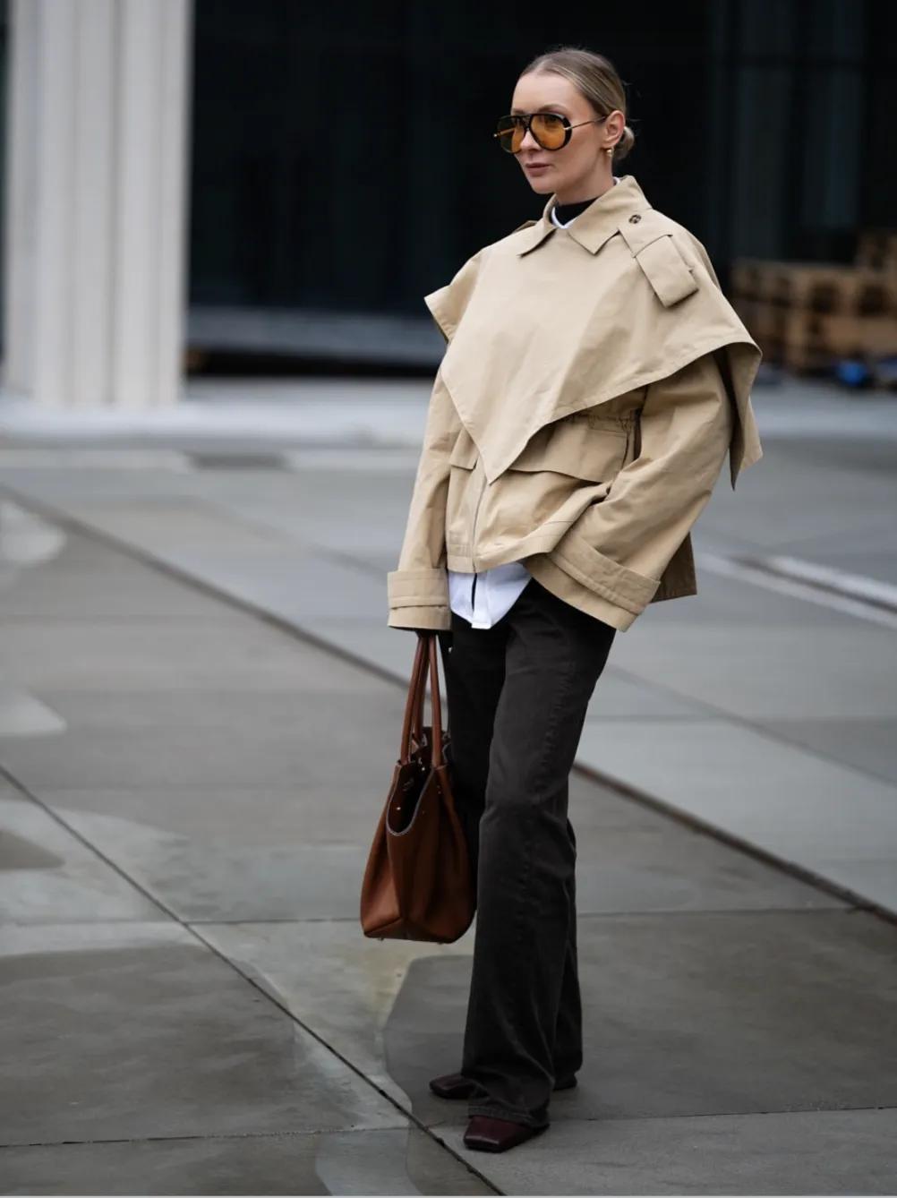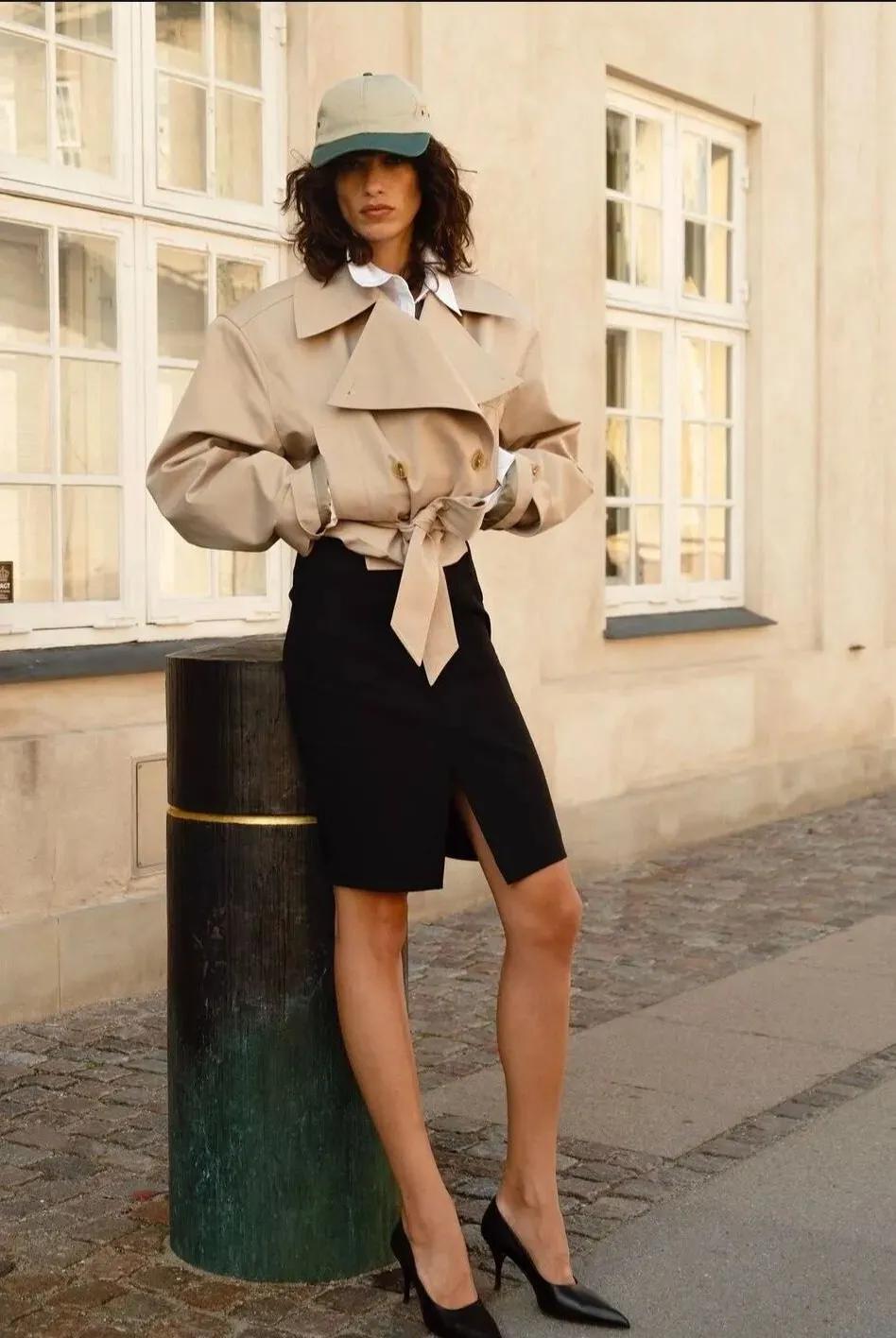 而且,短風衣的可塑性也是很不錯的,可以與牛仔褲、闊腿褲搭配一起,當然了,你也可以選擇柔美的裙子,風格隨意切換。