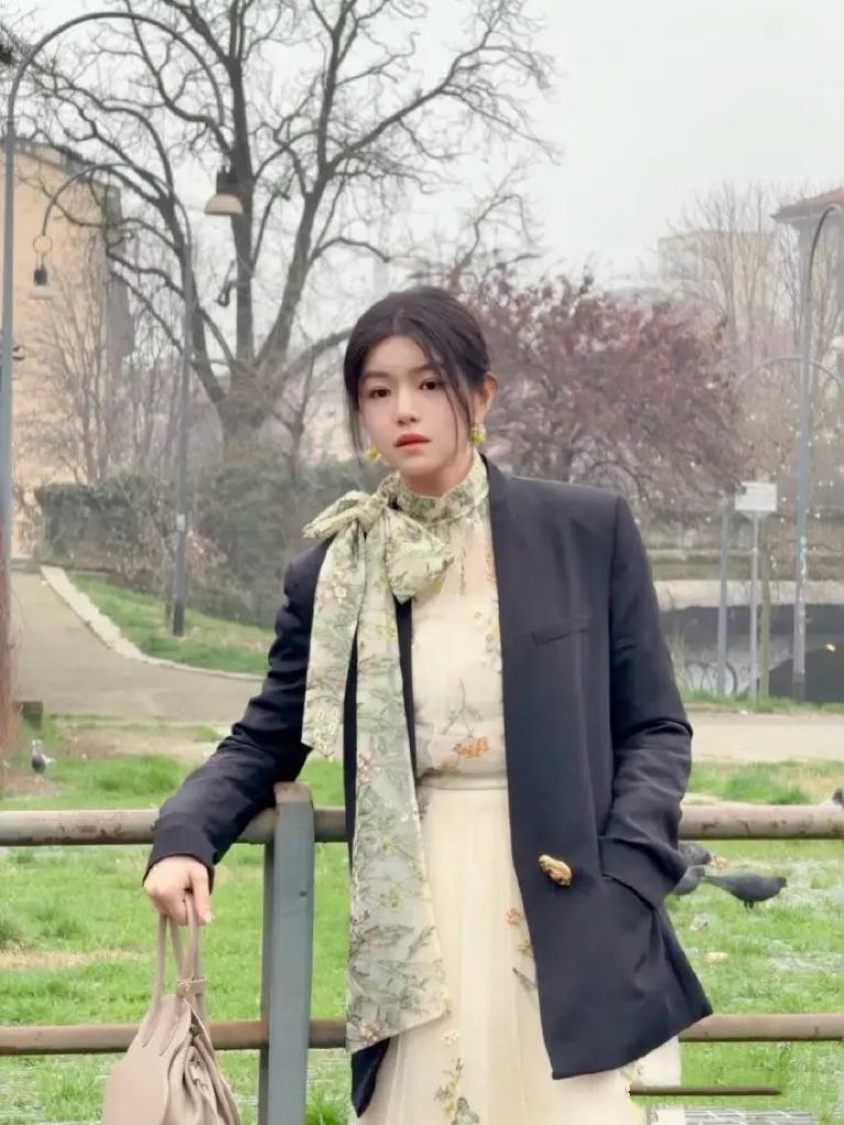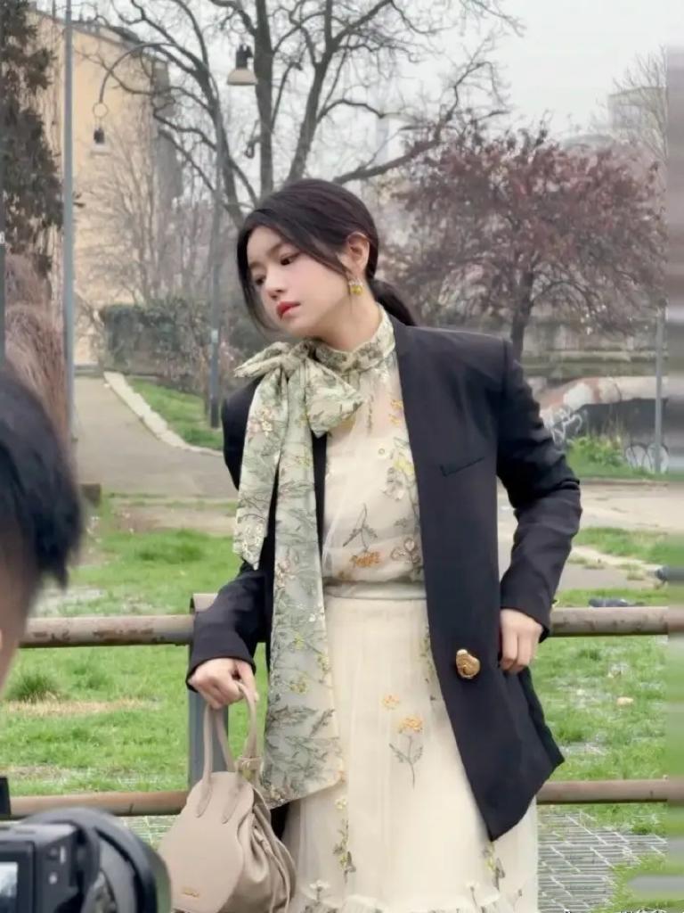 陳妍希這身打扮,簡直是把春意盎然寫在身上。初春季節,連衣裙+西服外套,就是如此的優雅浪漫。職場、休閒、甚至秀場,都可以美得自信從容。