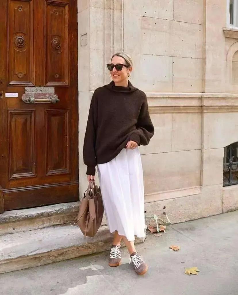 喜歡穿運動鞋的,這個春天又怎能少得了一雙薄底運動鞋呢?它將舒適與時尚拿捏得很穩,適合多種場合的穿搭。下裝搭配裙子,上衣選擇毛衣,休閒又溫柔,當配褲子時,又讓整個造型變得更鬆弛自在。