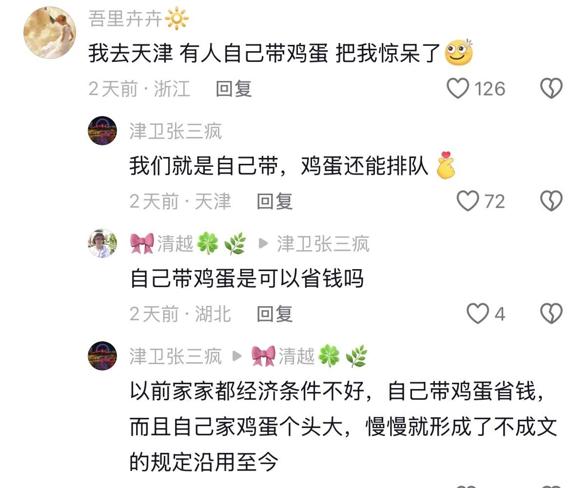 話鋒一轉,高雲翔就問:喫煎餅果子自帶雞蛋這事,到底是怎麼傳下來的呢?發小很直觀的回答:因爲便宜啊!