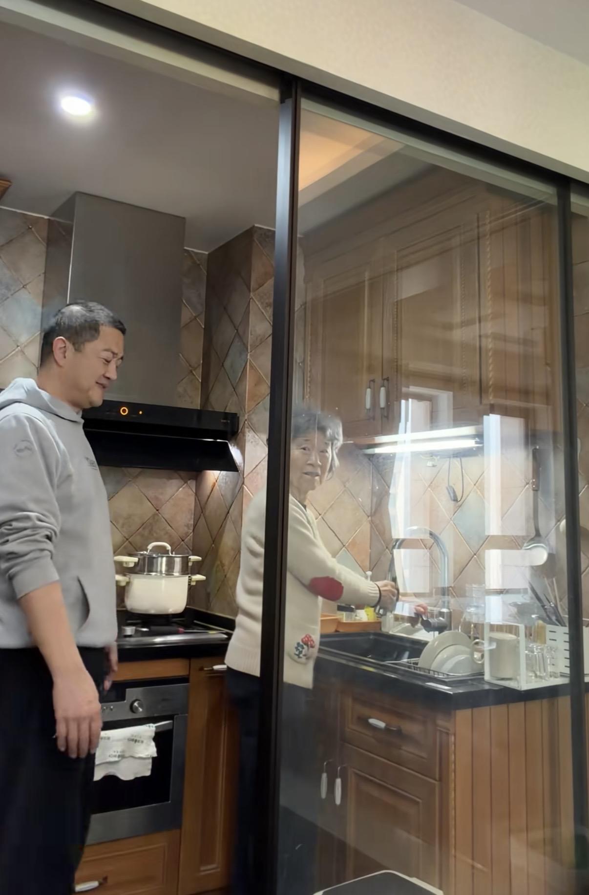 母親沒有在臥室、也沒有在客廳,她正在廚房裏忙活着。別看李亞鵬母親83歲了,老太太能開車、會做飯,不僅把自己照顧的很好,還能適當的照顧兒子。