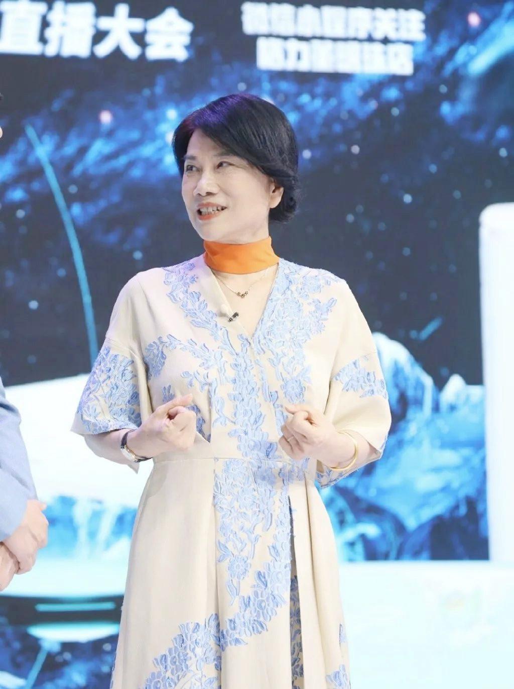 這身造型將唐服的大氣與現代時尚的簡約完美融合,展現了董明珠對美的獨特理解和追求。