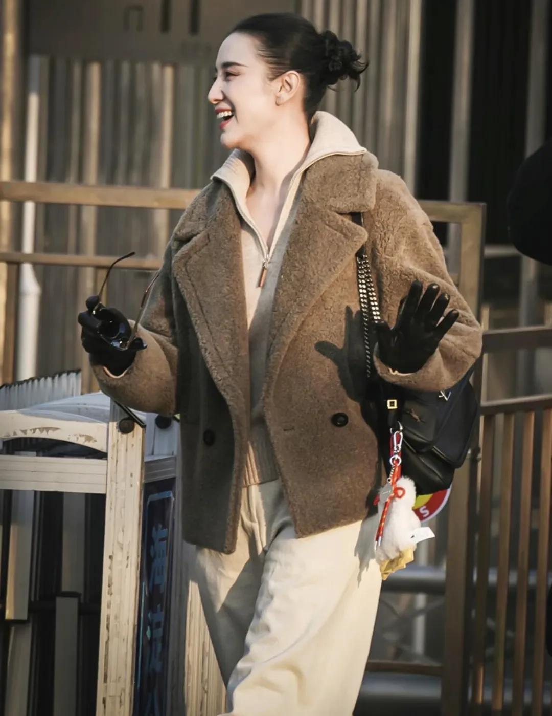 黑色短羊毛大衣,搭配高腰西裝闊腿褲,這完全就是職場大女主的穿搭,大衣v領的設計,很好拉長脖子線條。而闊腿褲的垂墜感,可以弱化身材臃腫,腳下踩着一雙尖頭鞋,走起路來都自帶氣場。