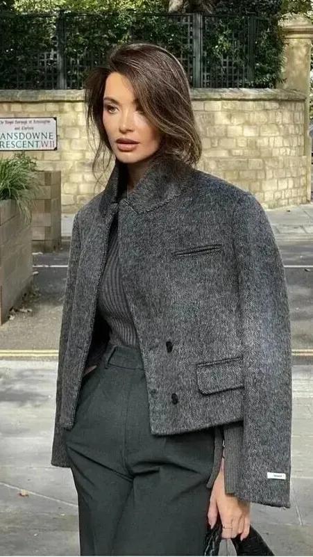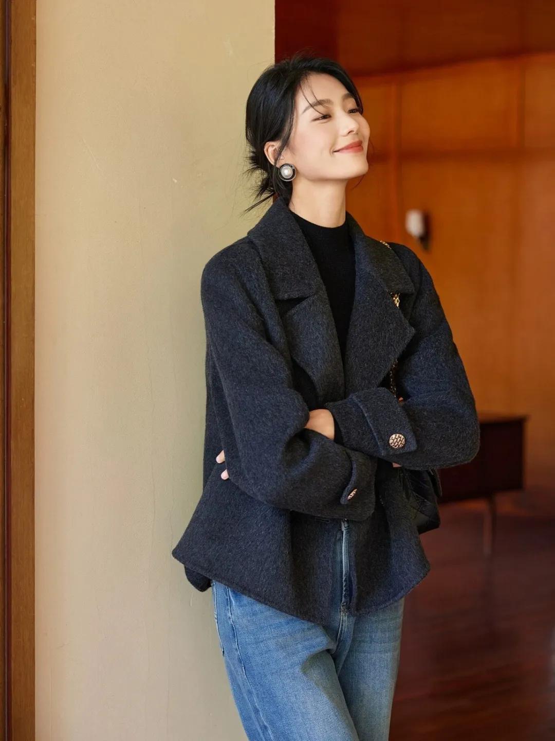 短大衣穿起來很顯利落,對於個矮的身材可是很友好的,搭配闊腿褲,寬鬆的褲型,可以很好修飾身材,顯瘦又藏肉。無論是日常逛街,還是上班通勤,都能讓你時髦出衆。
