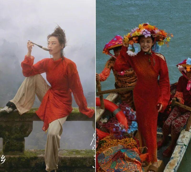 這條紅色的比較新,來自2025秋冬系列的“熾鯉”,圖案叫“火山魚”。好多明星拍片都穿過,比如馬思純、姚晨。▼