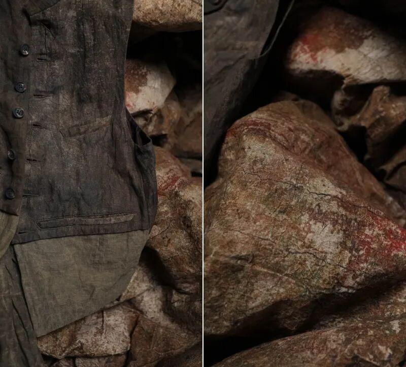 今年春夏系列的色彩靈感,就來自風化的石頭、剝落的漆木、褪色的壁紙——都是時間留下的痕跡。▼