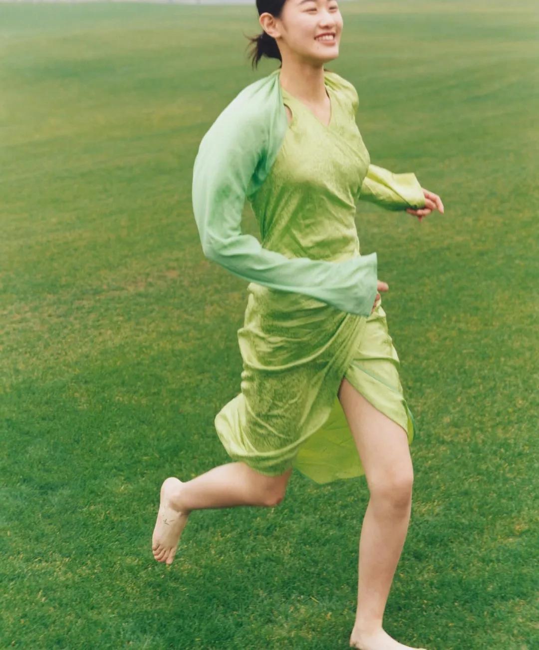 放一張近一點的感受一下~讓我想起他家2022秋冬系列,用到很多綠色系“官綠、青雲、瓷祕”等,都來自中國的傳統色譜。▼