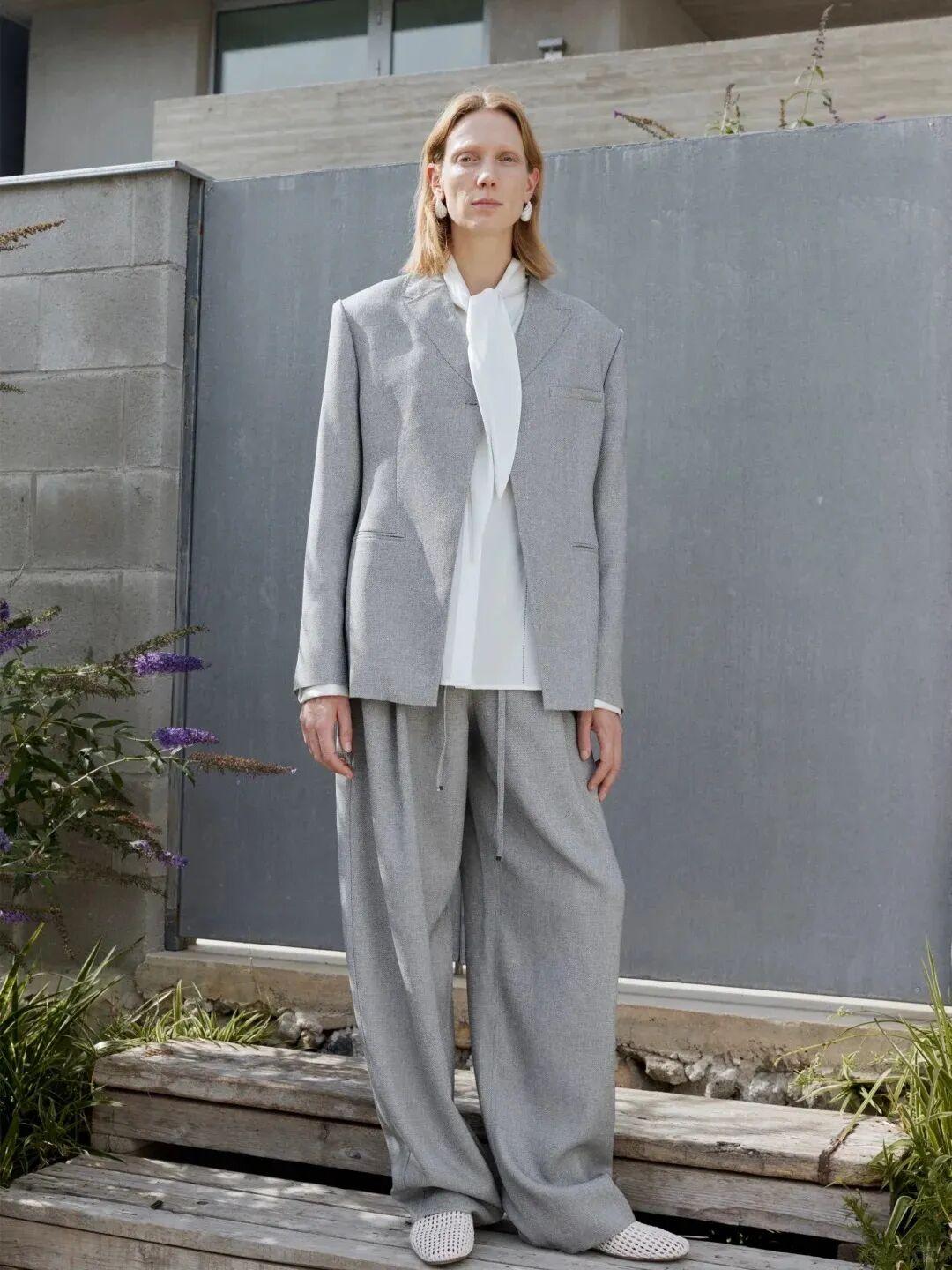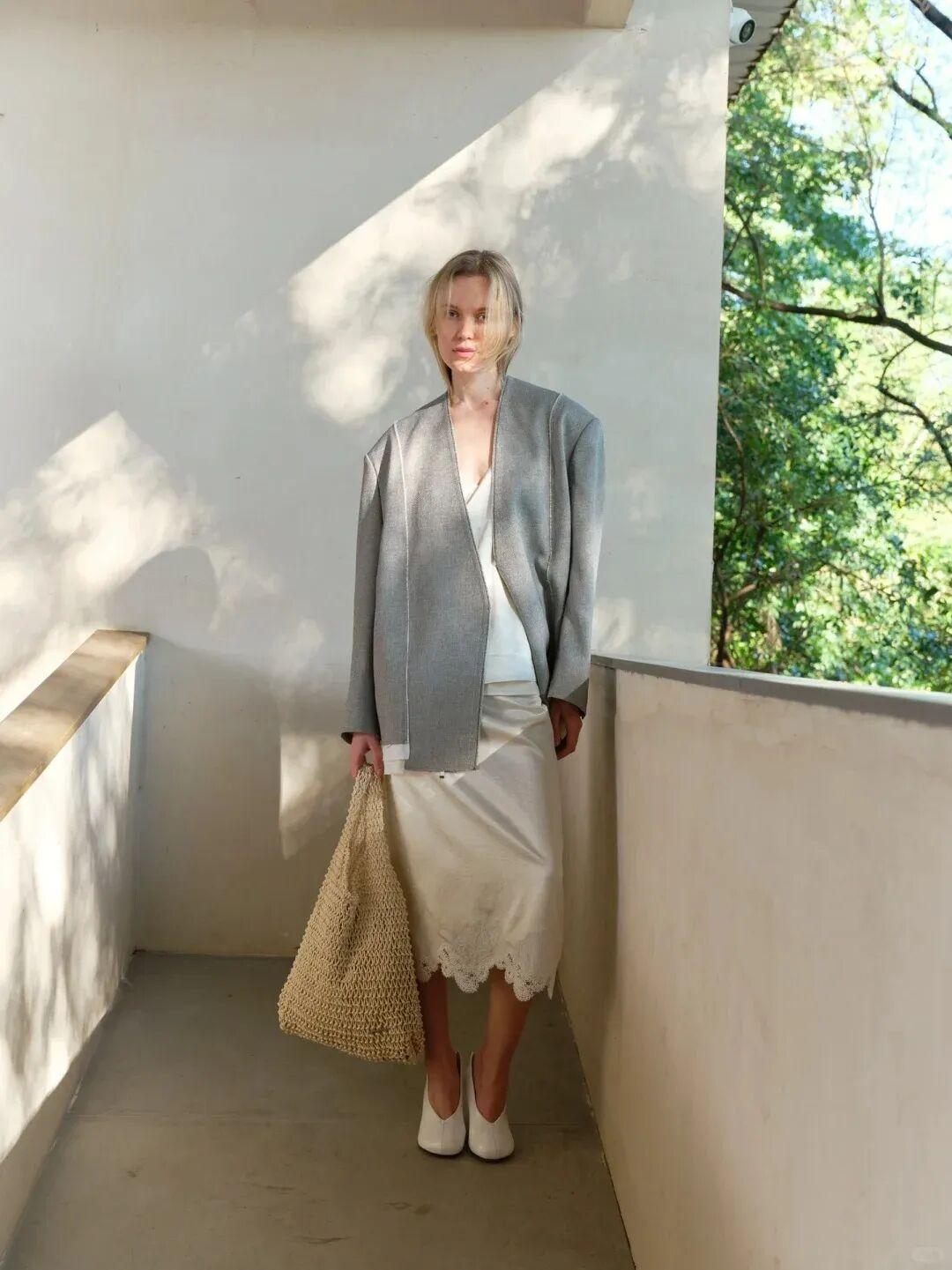 這個牌子有人叫他“國內The Row”,這個評價能看出他家的風格定位,但The Row的剪裁是爲西方人的骨架設計的——寬肩、修長、版型做得特別大。邱昊不一樣,他也做極簡,但不靠誇張廓形撐場面,剪裁更貼合東方人身形。