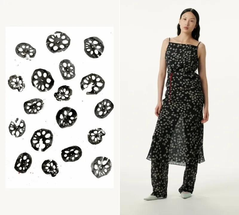 lotus roots錢藕印花:蓮藕在中國文化裏有富貴長壽、福氣多多的寓意,和輕盈的真絲結合起來很耐看。▼