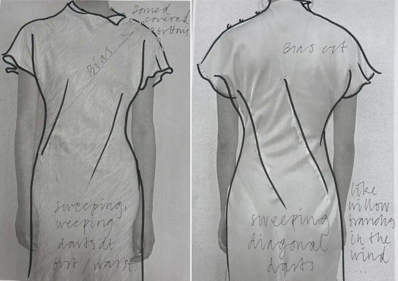 最大的特點是修長線條、斜裁工藝,裙子會順着身體曲線自然垂落,走路時有流動感,但又不會緊貼身上。兩側還有小開衩,保留了旗袍的韻味。▼