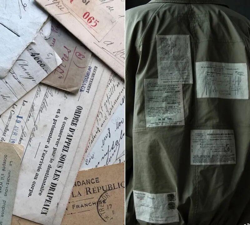 他用的圖案,往往來自真實的歷史材料:古書信、老舊面料、旅途中拍下的照片。▼