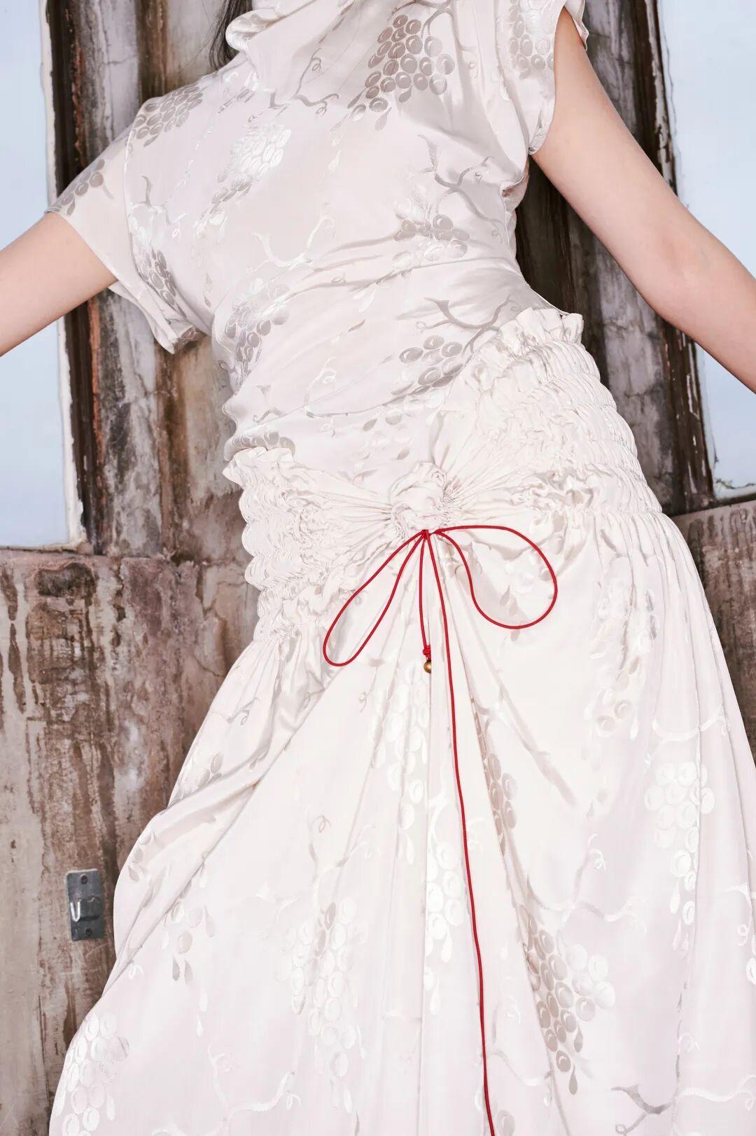 cici項偞婧穿的這條白色更適合古典美人,也很適合領證、當敬酒服。扶柳裙系列官方定價基本都在6500元+。▼