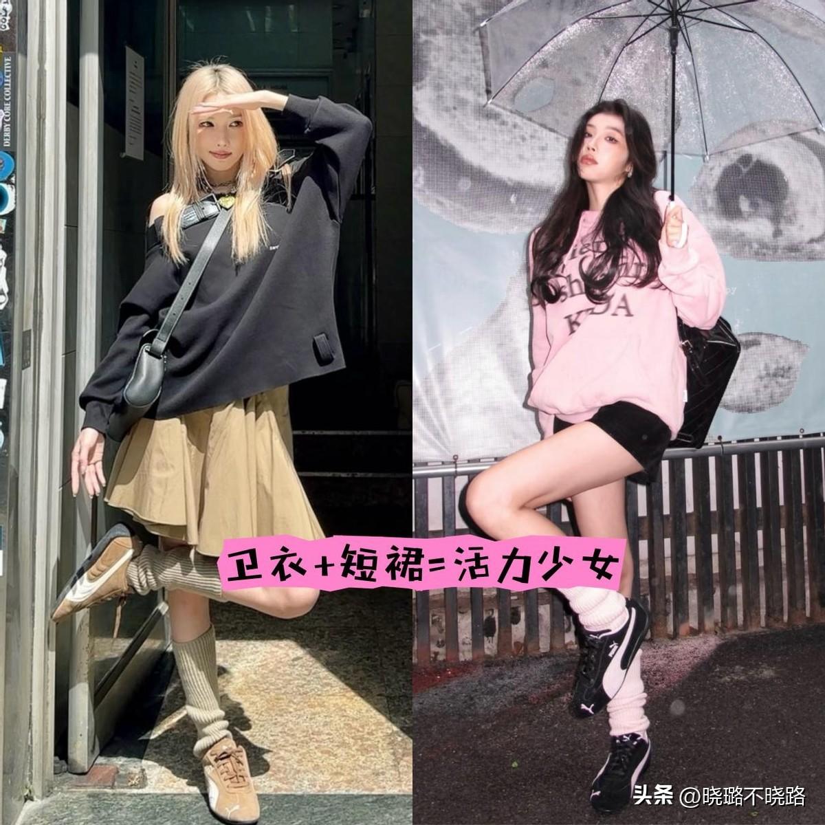 穿搭上想要減輕壓力,就要學會藉助套裝,不想出錯,就別一味的胡亂混搭,穿彪馬鞋想要顯瘦,衛衣+短裙絕對是最佳拍檔,再搭配上一雙針織堆堆襪,減少腿部的露膚面積,超有少女感。