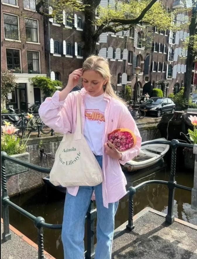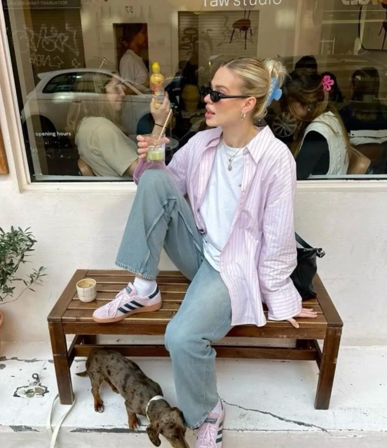 怎麼說呢,雖然白色很基礎經典,但有時候也要嘗試下這種粉色系的,無論是淺粉,還是芭比粉,都很適合這個春天呢。搭配淺藍色牛仔褲就特別好看了,如果想穿出層次感,疊穿一件白色t恤就好,簡單隨性,輕輕鬆鬆就拿捏住時髦感。