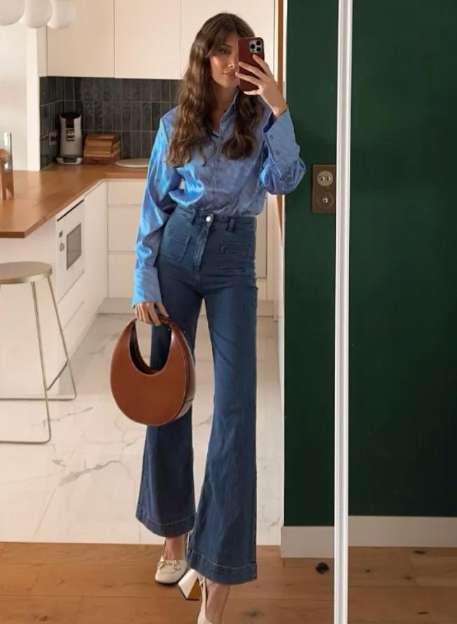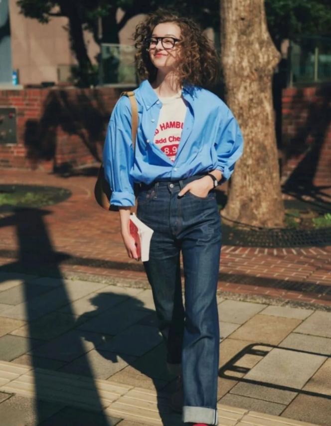 襯衫配牛仔褲,可是春天最顯高級的組合了,整體乾淨利落,像這種藍色襯衫,更是自帶清爽與溫柔,最重要的是穿起來很顯氣質,選擇與牛仔褲相配,則多了幾分隨性與利落,有着少年感和文藝氣息。