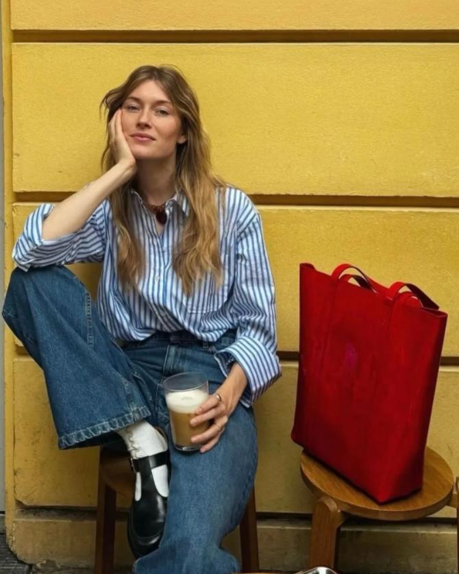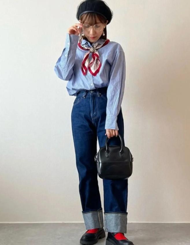 而對於辦公室的姐妹而言,穿搭則需要顯得正式些,條紋襯衫是很不錯的選擇,利用牛仔褲的隨性,能穿出一種毫不費力的高級感,這可是深受衆多年輕姐妹喜歡的基礎組合。