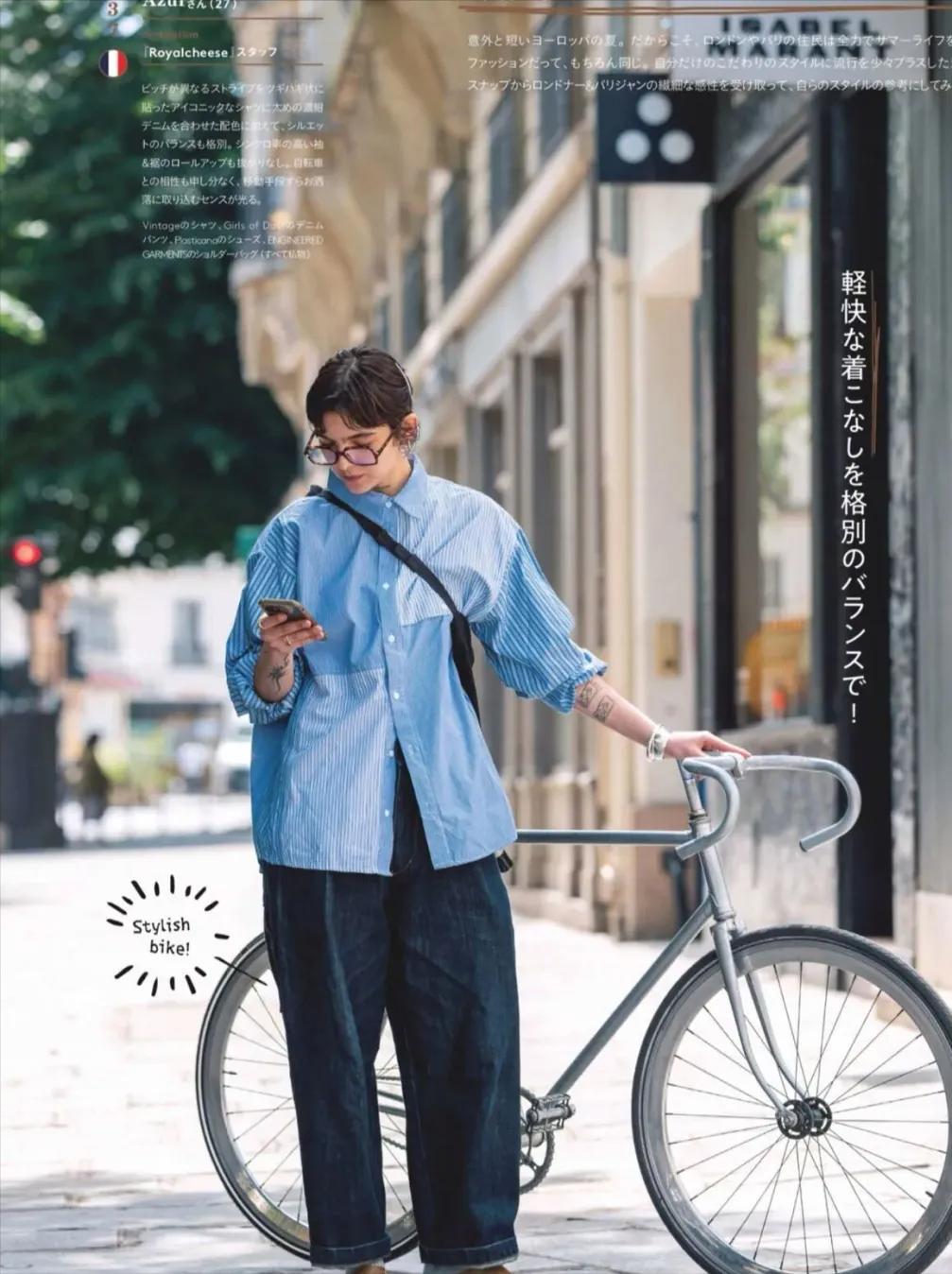 早春的時候,真的建議大家試試襯衫配牛仔褲,例如白色襯衫搭配九分的牛仔褲,微微露出腳踝肌膚,乾淨又清爽,視覺上腿部的比例也拉長了不少。