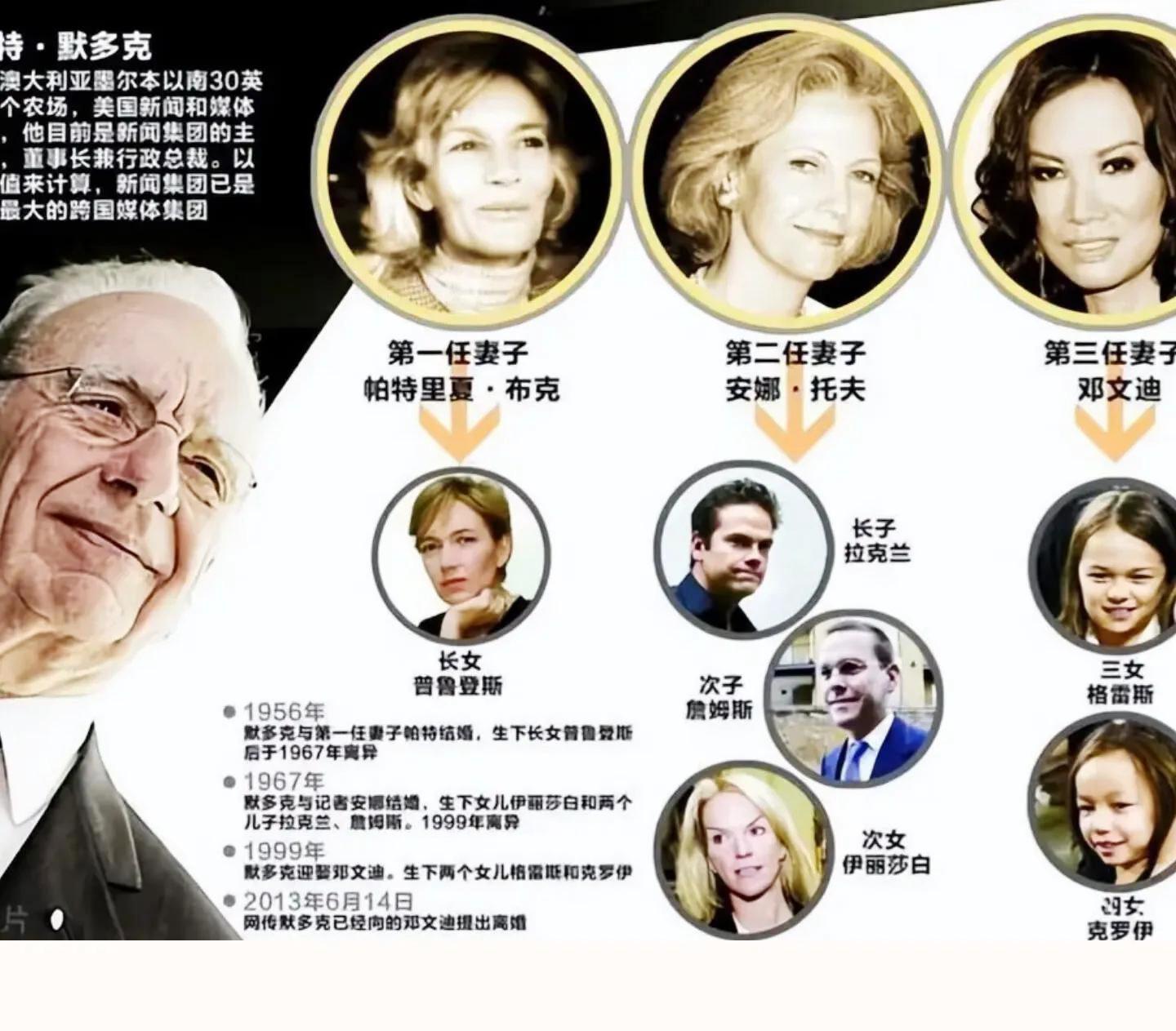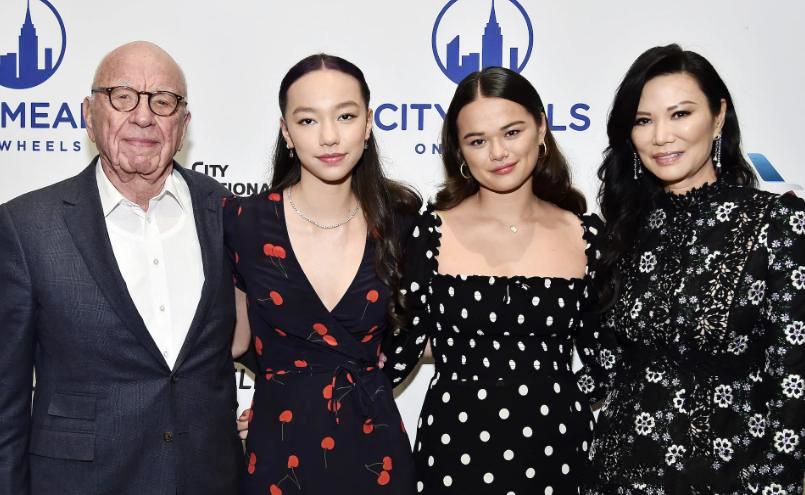 鄧文迪參加前夫默多克95歲生日,倆女兒應邀穿的俏,資產共280億