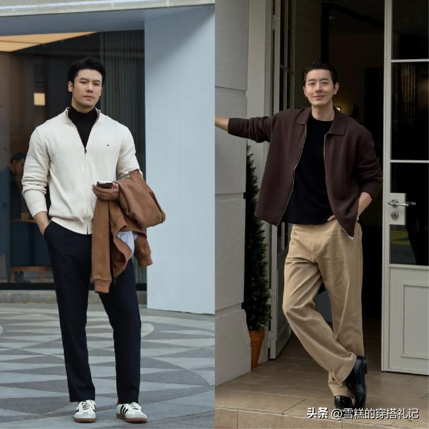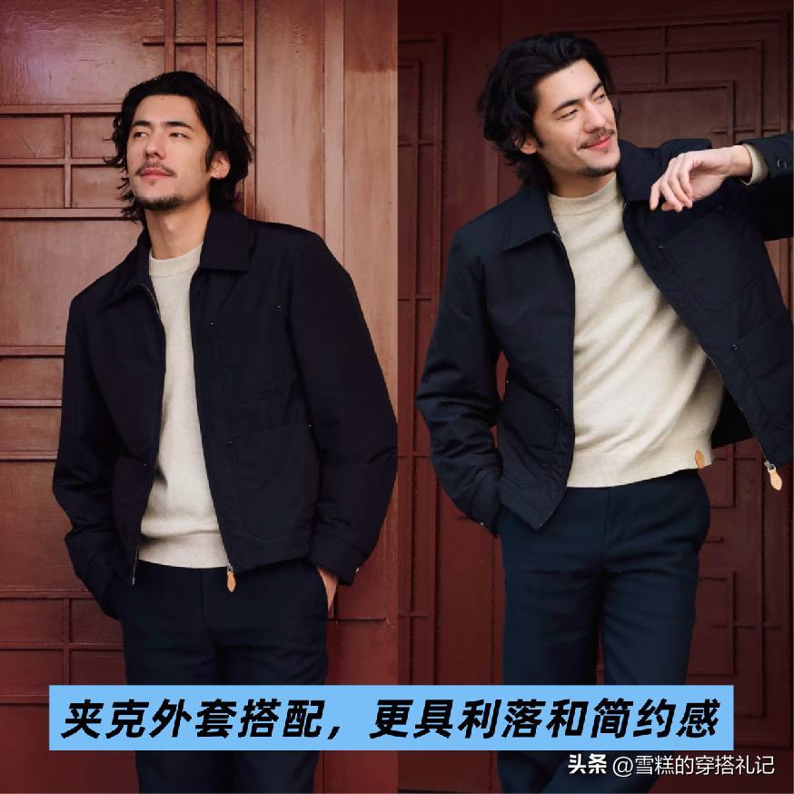 第2款非常適合進行運用的外套,就是不僅大氣,而且非常舒適又有質感的夾克外套,它相比較於西裝外套而言,所展現出來的呆板感就沒有那麼明顯,日常出行又或者是運用於正式的場合當中,都是非常適宜的,尤其是對於不少中年階段的男藝人而言,如今也已經成爲了出門搭配的必選。