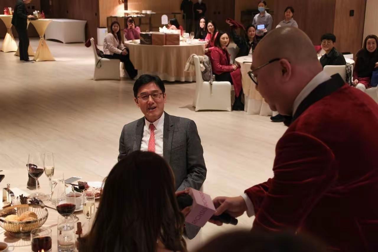3月13日,富商馬清鏗就這麼堂而皇之的出現在情婦公司的年會活動上。他西裝革履、帶着眼鏡斯文紳士,繫着紅色領帶與鍾睿心的紅裙完美呼應。