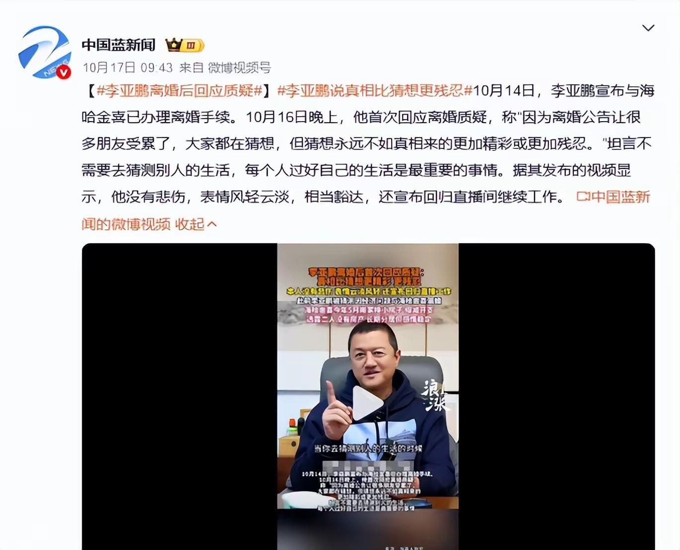 即便兩人離婚後,李亞鵬也強調這只是私事,不希望佔用太多公共平臺。