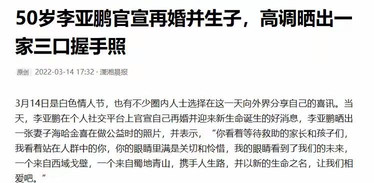 沒離婚的時候,勸人家離婚、離婚後又勸人家復婚。李亞鵬的感情生活,更是“一石激起千層浪”,似乎從來沒消停過。