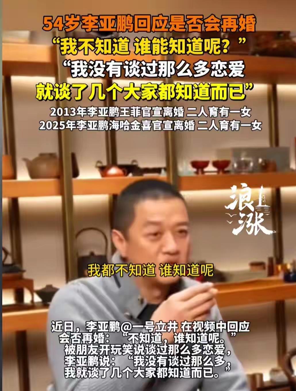 在直播間裏賣茶,也偶爾回應私生活的問題。關於會不會再婚,李亞鵬回答的很坦白、他說“我不知道,誰能知道呢?”