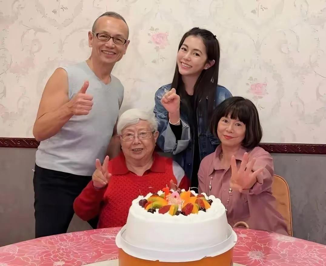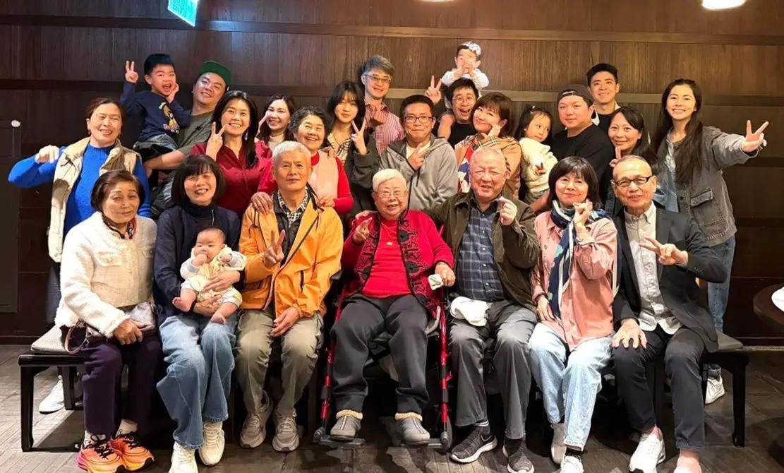 在任家萱外婆103歲大壽的時候,全家人再次聚到一起。25個人的全家福熱熱鬧鬧、看得人心裏暖暖的。老壽星坐在中間位置,穿着紅色暗紋的中式上衣,面容慈祥。