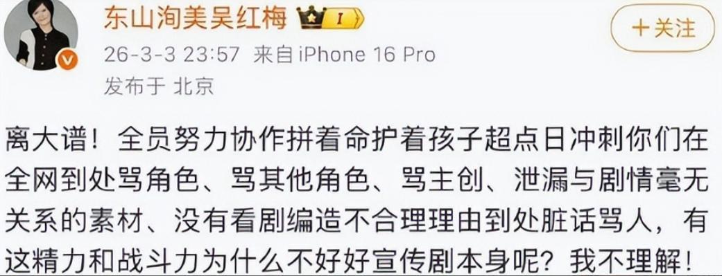 但製片方非但沒有正視關曉彤的影響力,不給大家一個說法,反而還反咬一口,將髒水潑在關的粉絲身上,諷刺他們有這精力不如好好宣傳劇本。