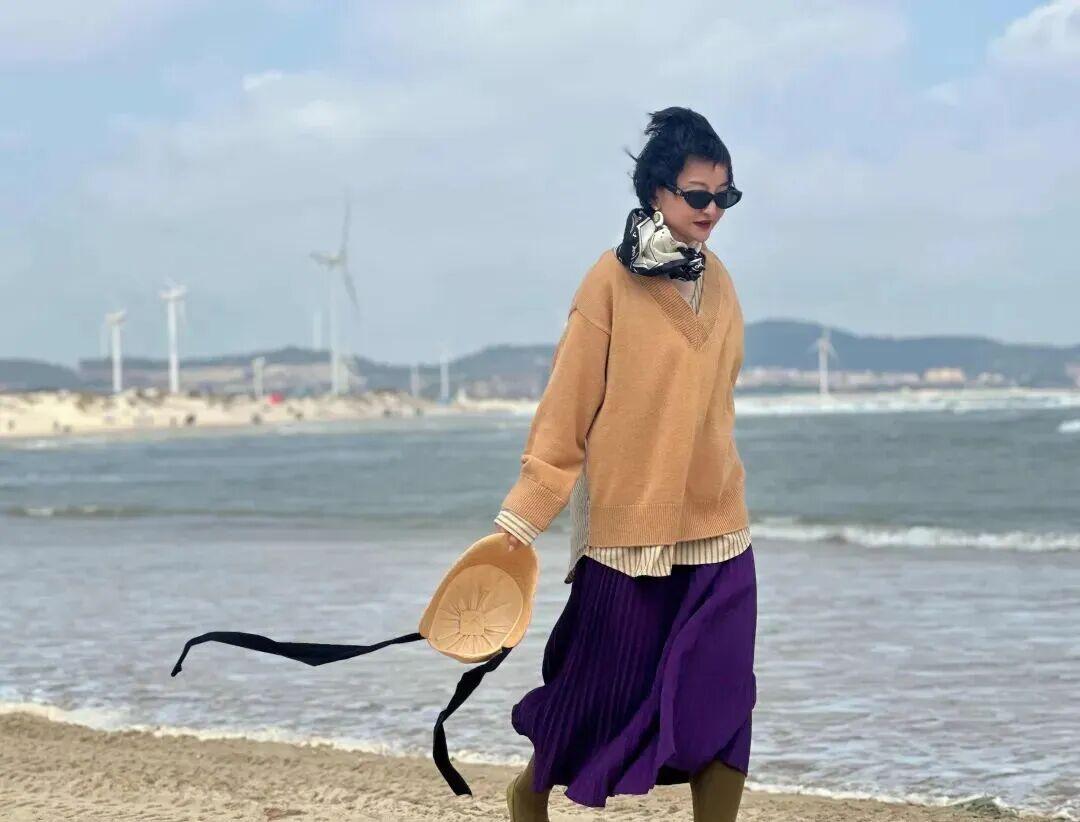 YANG太傅:今年一月在三亞,穿的一條掛脖裙搭黃襯衫,腰帶是我自己搭滴~▼