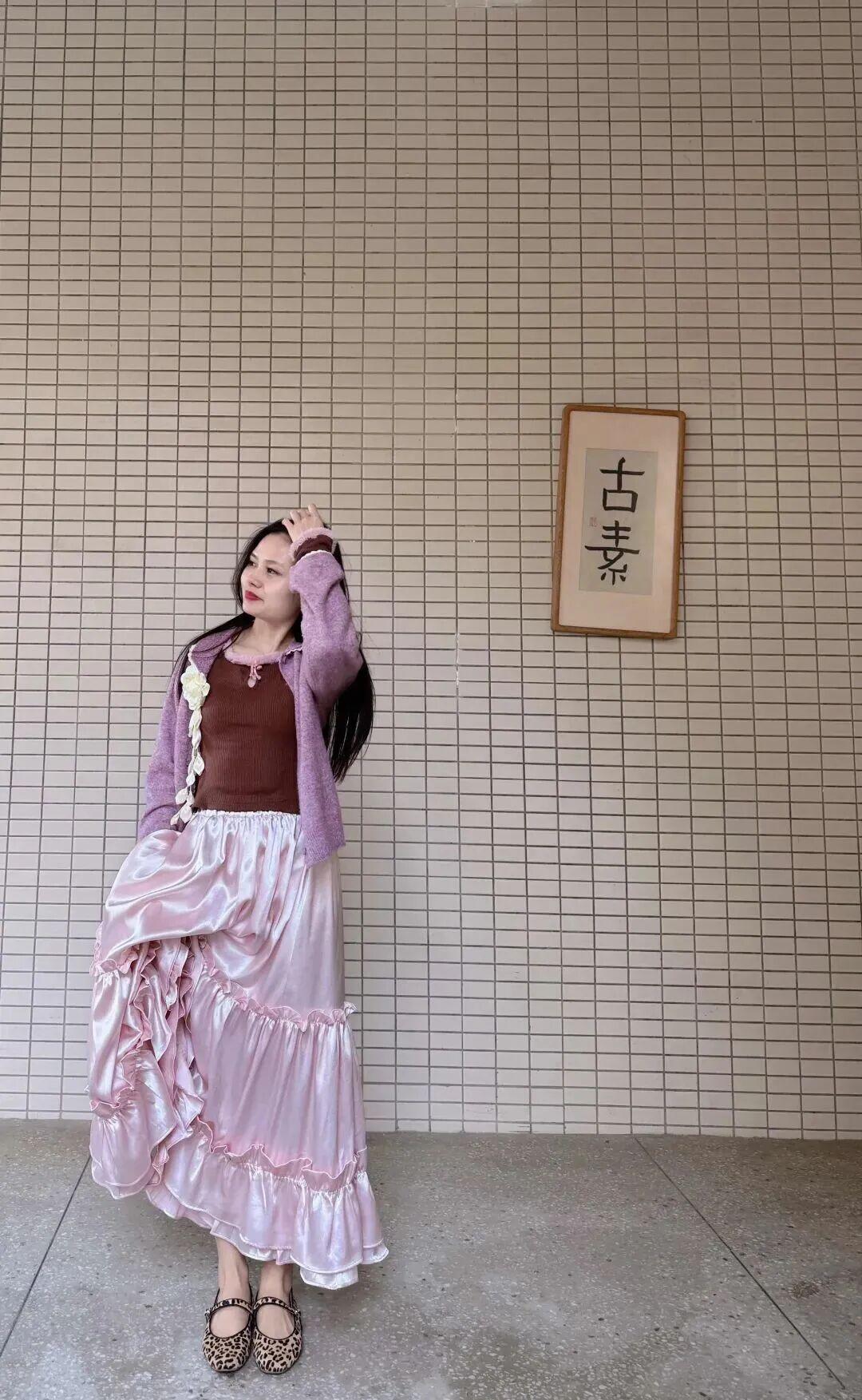 Sue 愫:皮衣搭豹紋長裙(英國一家很有名的折扣店買的,很便宜),在一朋友的民宿圍爐夜話時拍的,被一起參加活動的50+姐姐們誇有少女感,其實我孩子都工作了。▼