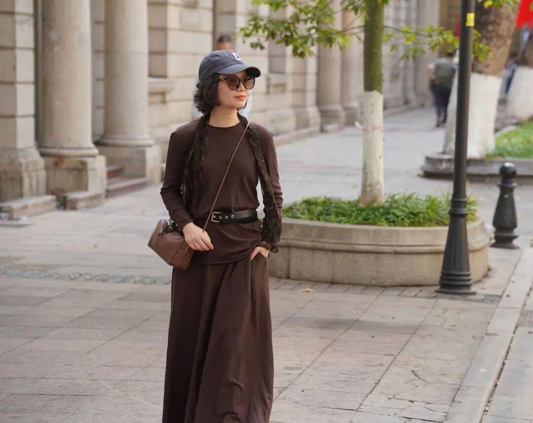 Rara:分享升溫天的棕色皮衣加刺繡裙▼