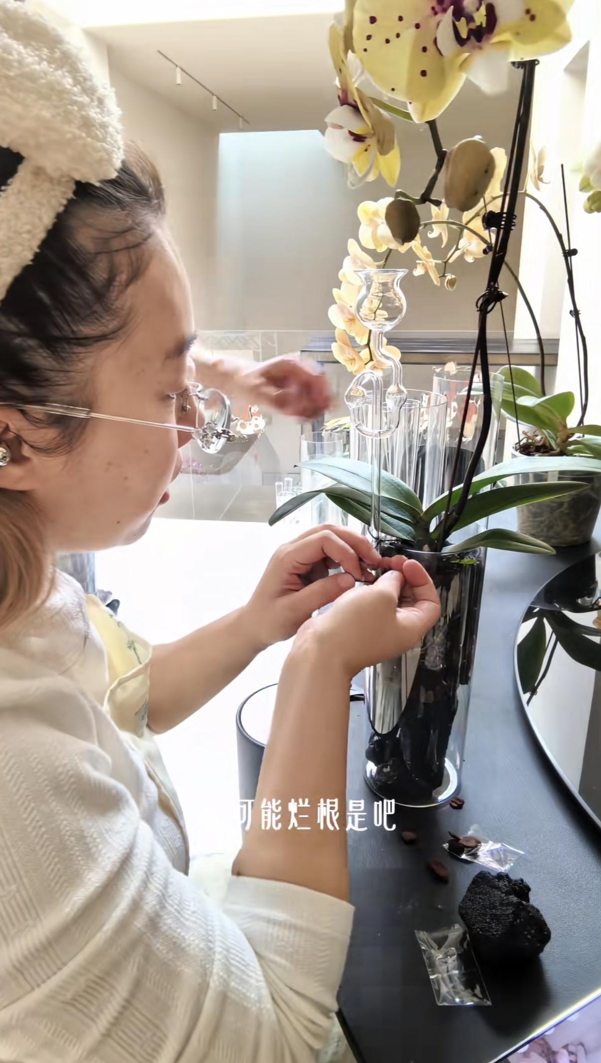 圓潤的臉蛋、有些微胖的身材,反而更接地氣了。她在家裏研究花藝、戴着厚厚的近視鏡,就像讀書時候的學霸一樣!