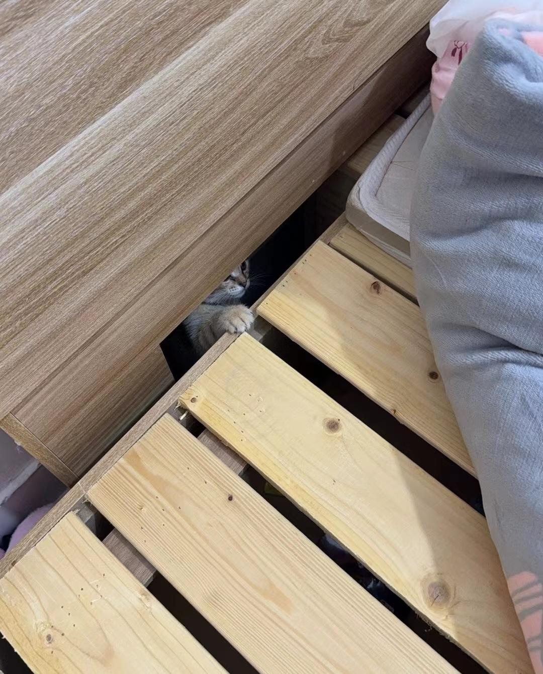 買個貓窩帳篷、紙箱,或者把衣櫃門留一條縫。給它一個專屬的、安全的角落,它就不會去鑽牀底了。
