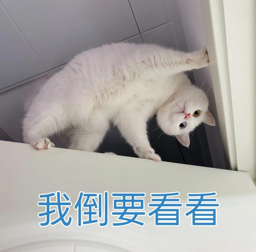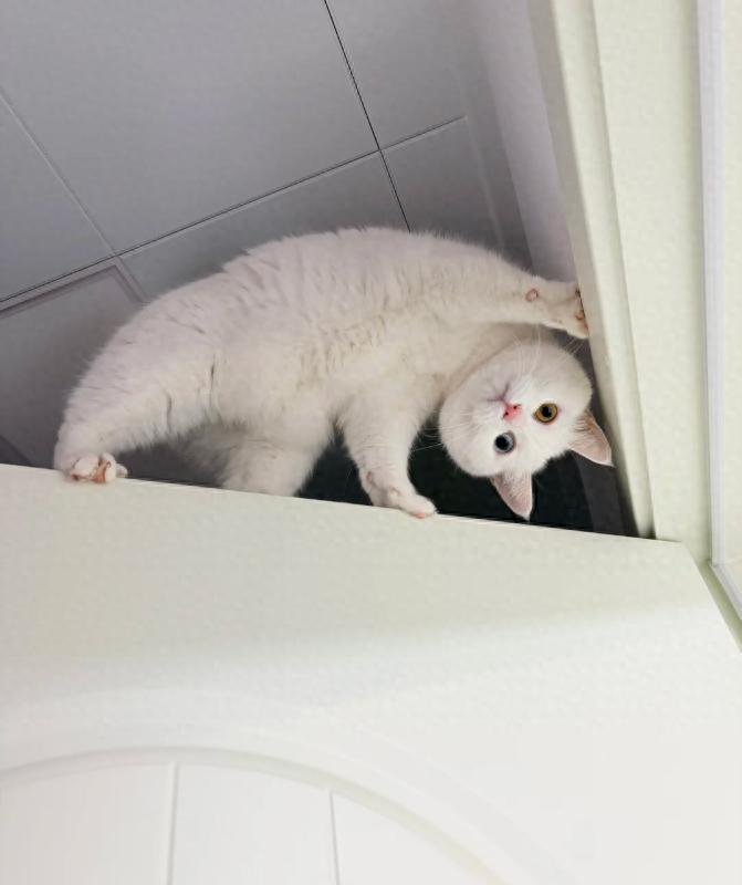 不過,小白貓站在門上彎腰探頭的姿勢,不管它是在賣萌,還是被嚇傻了,都讓人喜歡的不得了。
