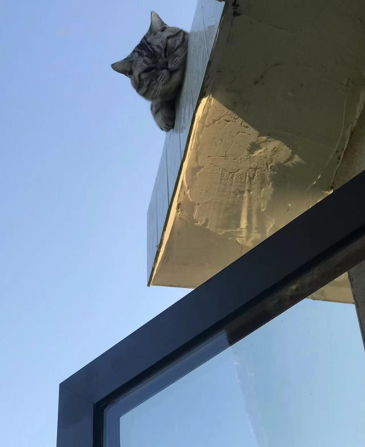 貓:“別光拿手機拍啊,快幫幫我!要掉下去了!”