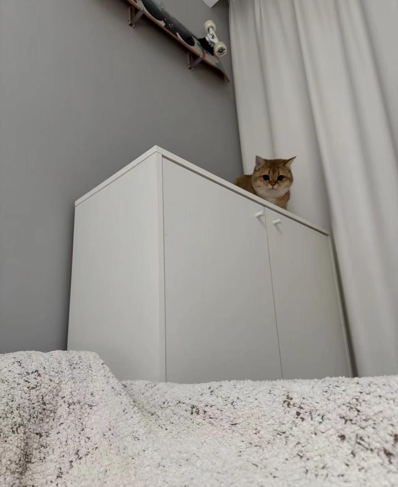 像家裏的門、櫃子,一般都符合尷尬高度的區間,所以很多貓不敢跳。
