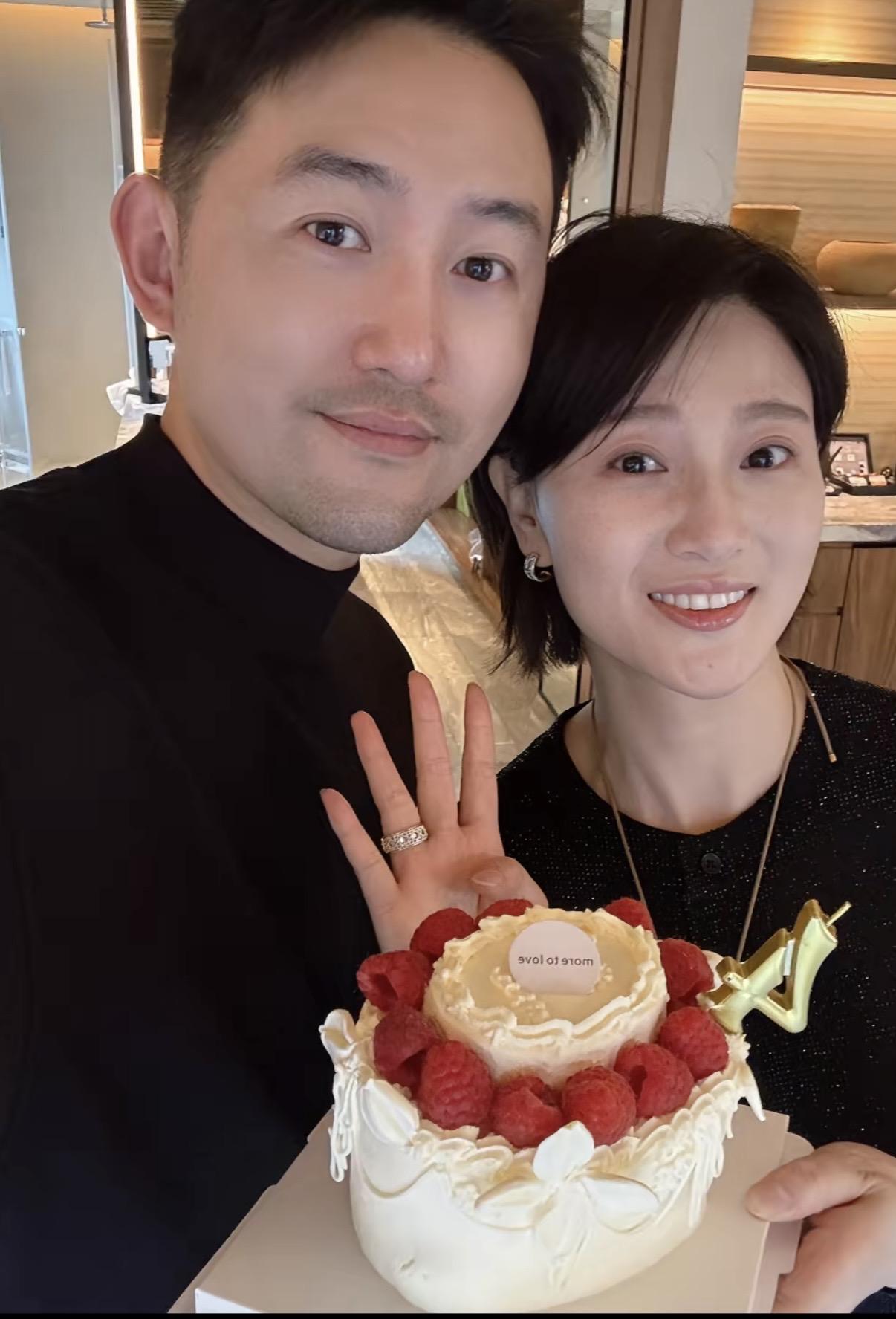 結婚第四年的時候,兩個人像是在家裏慶祝的,那個時候甜酒應該已經在侯夢莎肚子裏了,她看着有點疲憊、但氣色很好。