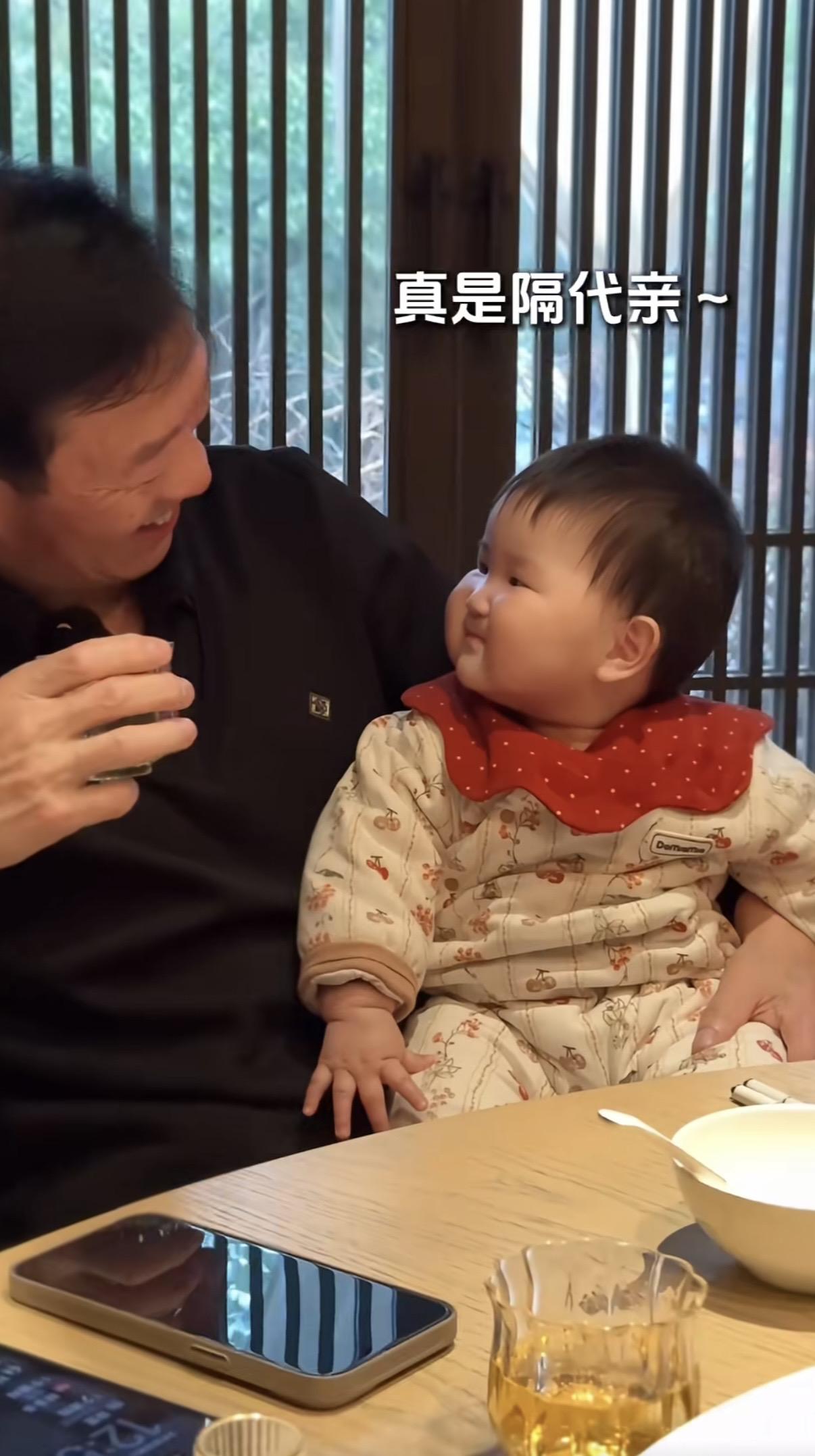 視頻開頭首先出現的就是甜酒和外公的畫面,外公端着酒杯、對着甜酒寵溺的笑,那一刻隔輩親具象化了。