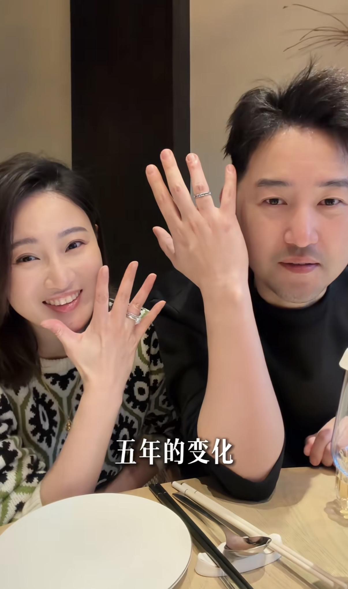 緊接着侯夢莎和老公毛毅就展示了自己的婚戒,結婚第五年、毛毅變化挺大的,他真的出現了“幸福胖”。