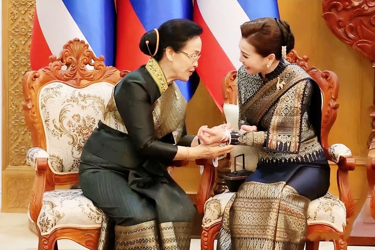 在老撾傳統拴線祈福儀式上,蘇提達王后的穿搭則體現了對東道主文化的尊重與共鳴,將泰式美學與老撾元素巧妙融合。